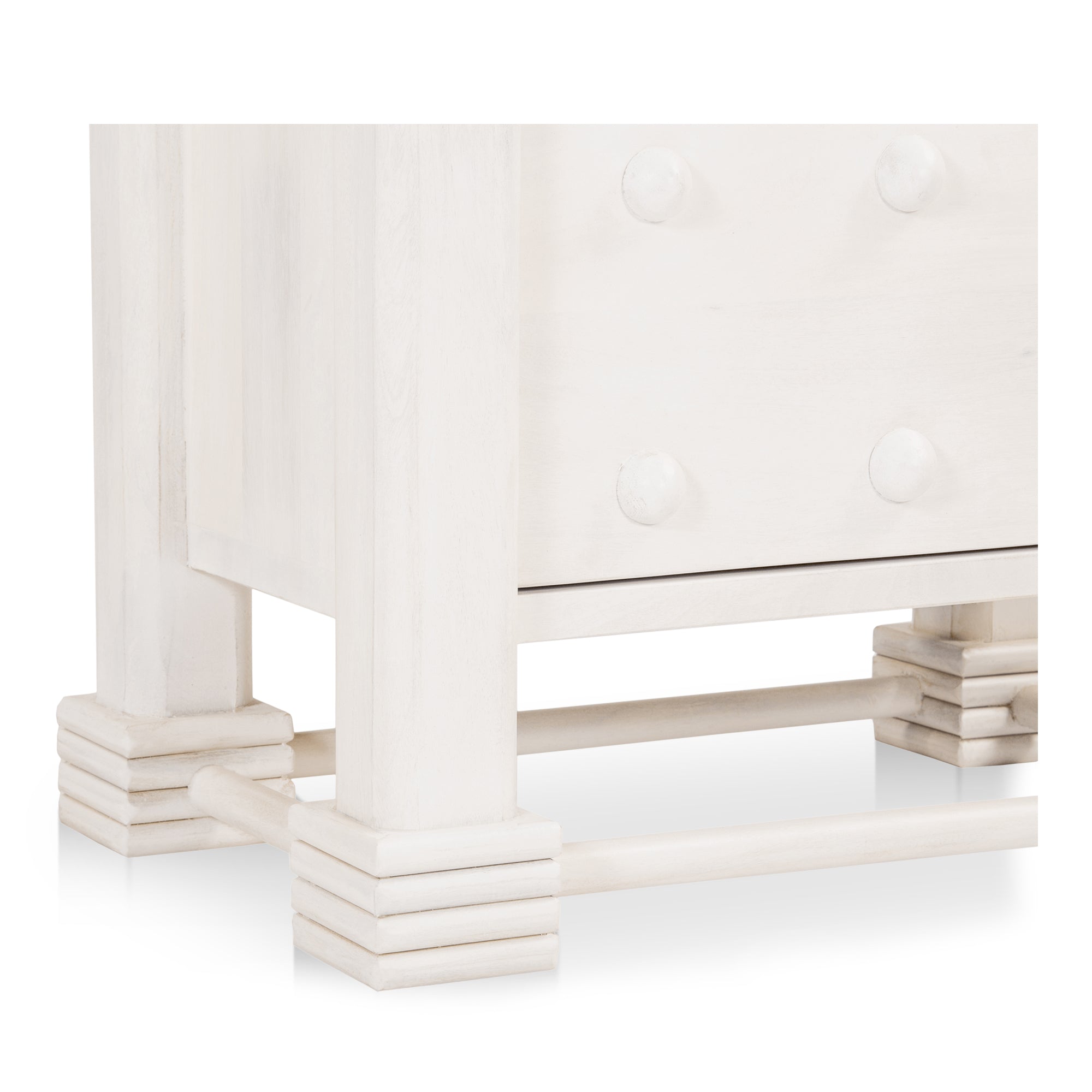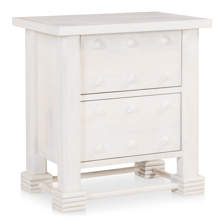 Shiloh Nightstand, Hand-Carved Mango Wood with 2 Push-to-Open Drawers, French-Inspired Detailing, White