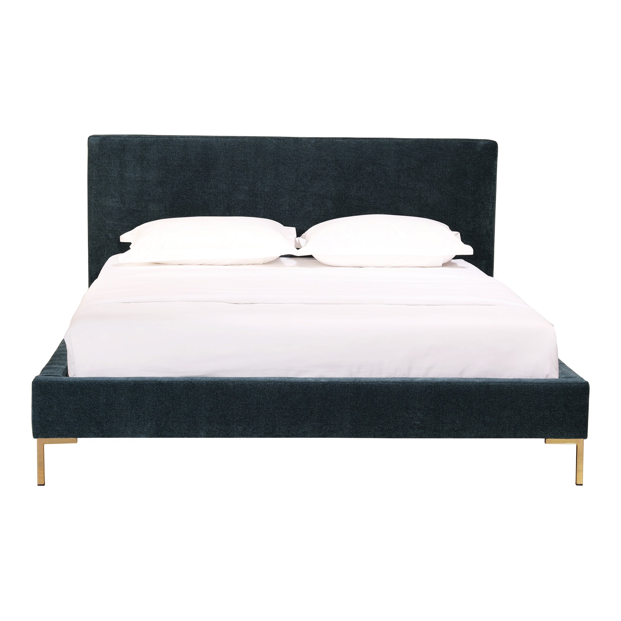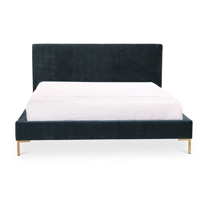 Skylar, Queen Bed with Foam Padded Headboard, Midnight Blue Velvet Finish