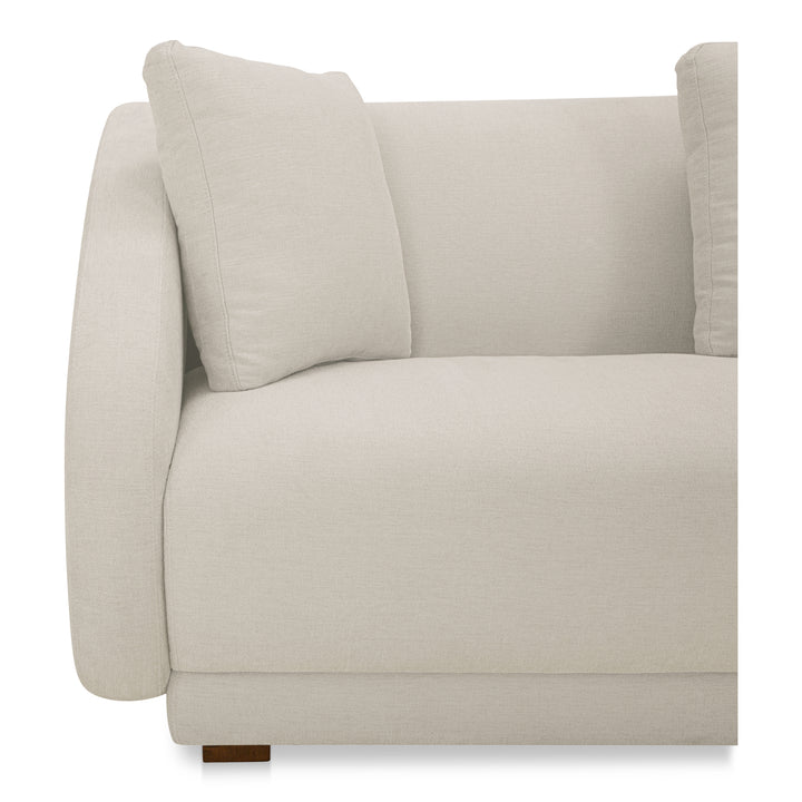 The Solace 5-Seater Modular Sofa by Nadaal Studios strikes a balance between form and function, with a silhouette that feels both grounded and graceful. Its plinth-style base and angled sides offer architectural weight, while sloped arms and deep cushions create a welcoming, cocoon-like feel. Upholstered in a soft white performance fabric, it’s a sculptural focal point designed for real life. Whether styled in a minimalist space or layered with personal accents, Solace is made to evolve with you.