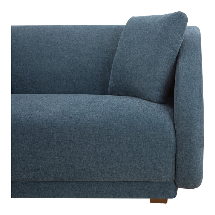 The Solace Modular Sectional in a six-seat layout offers a balance of elegance and functionality for modern living. With its distinctive angled sides, soft sloped arms, and low-profile plinth base, this piece brings sculptural simplicity to any space. Upholstered in a richly textured, deep blue performance fabric, Solace invites you to relax in style. Generous foam and fiber filling deliver lasting comfort, while the solid wood frame grounds the design in strength. Whether you’re lounging solo or entertaining a crowd, this sectional adapts beautifully to your lifestyle.