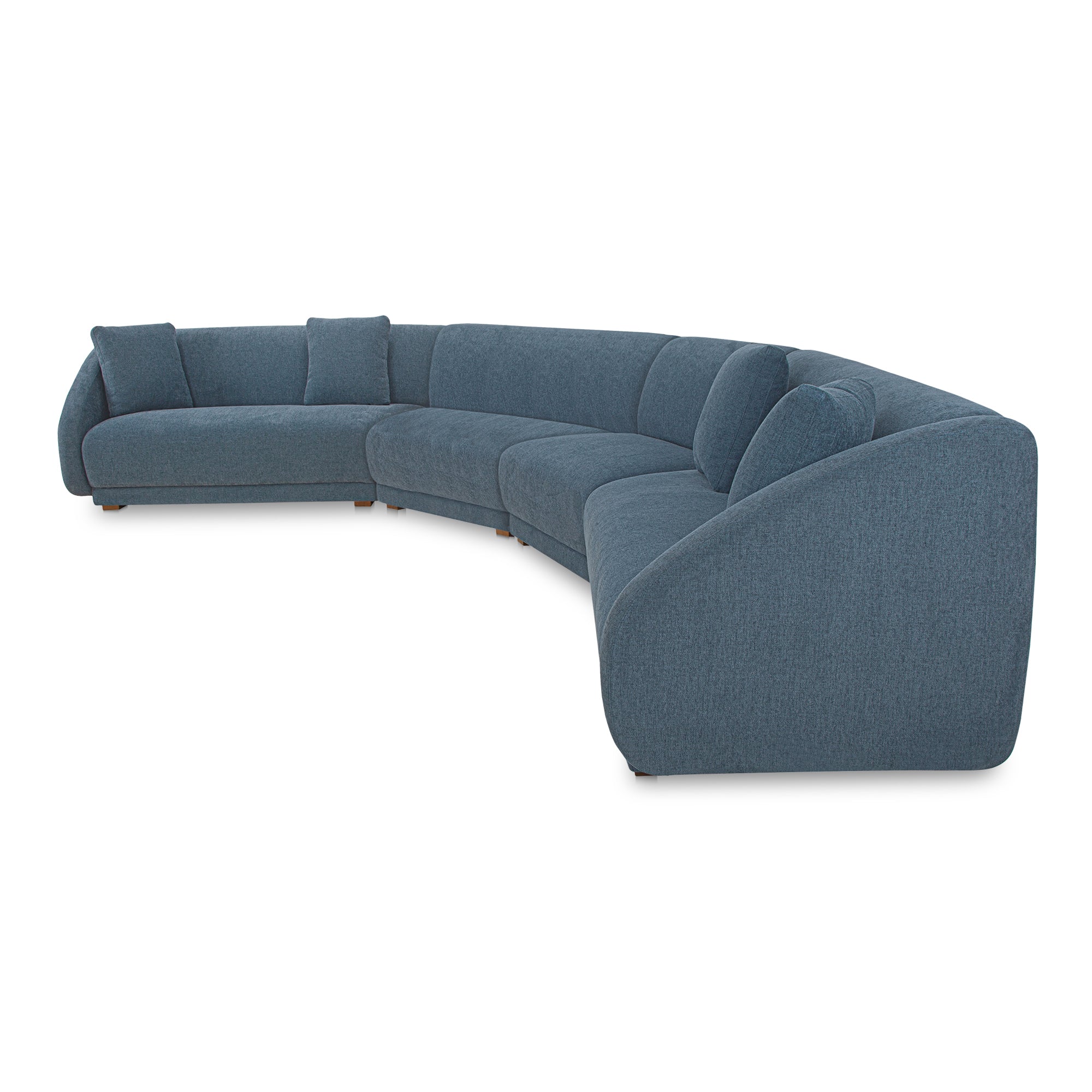 Solace 4 Piece Modular Sectional, Angled Sides, Sloped Arms, Deep Foam & Fiber Cushioning, Plinth Base, Four Toss Cushions, Deep Blue