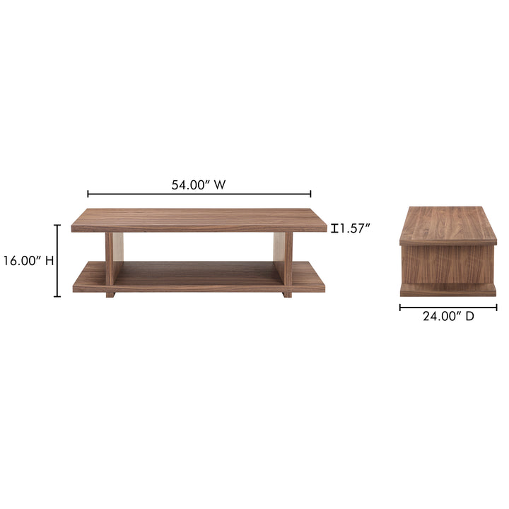 Soleil Coffee Table, Rectangular, Open-Shelf Design, Walnut Veneer Over MDF, Brown