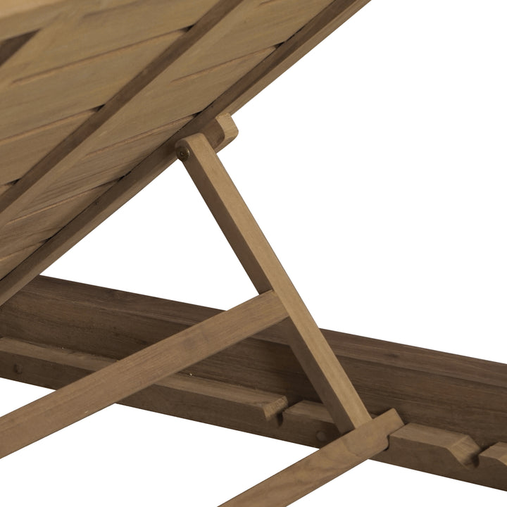 Crafted for long, lazy afternoons outdoors, the Sorelle Outdoor Lounger in Brown blends sculptural form with laid-back comfort. Its solid teak frame supports a quick-dry foam cushion upholstered in rich brown Olefin fabric for a warm, textural look. With five reclining positions, this lounger adjusts to your mood—from poolside reading to afternoon napping. Its low-to-the-ground design delivers a relaxed profile that complements modern patios and resort-inspired spaces alike.