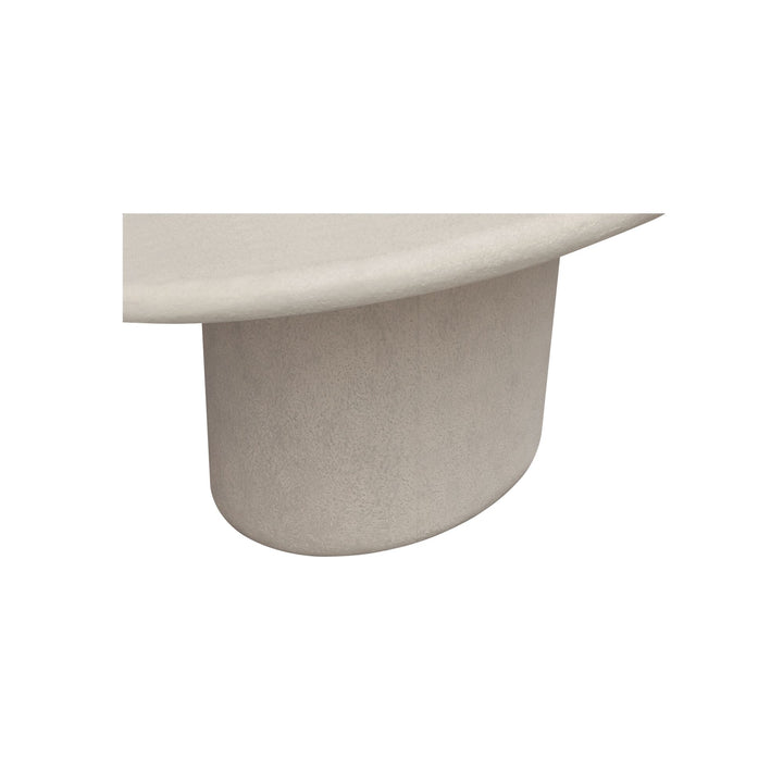 Designed for open-air dining, Sorin combines a concrete and fiberglass composite with a hand-textured finish that recalls Venetian plaster. The substantial cylindrical base and softened bullnose edge bring balance and approachability to the silhouette. Its neutral cream tone layers easily with woven chairs, teak accents, or metal frames, creating a cohesive setting for everyday meals or weekend gatherings. Natural variation in the finish ensures each table presents distinct, artisanal character.