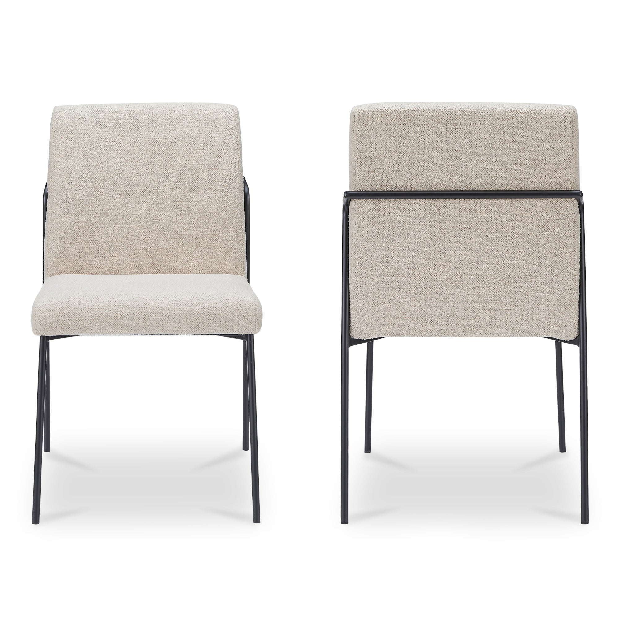 Soryn Dining Chair, Curved Metal Frame, Foam Cushioned Seat and Back, Ivory Upholstery - Set of 2