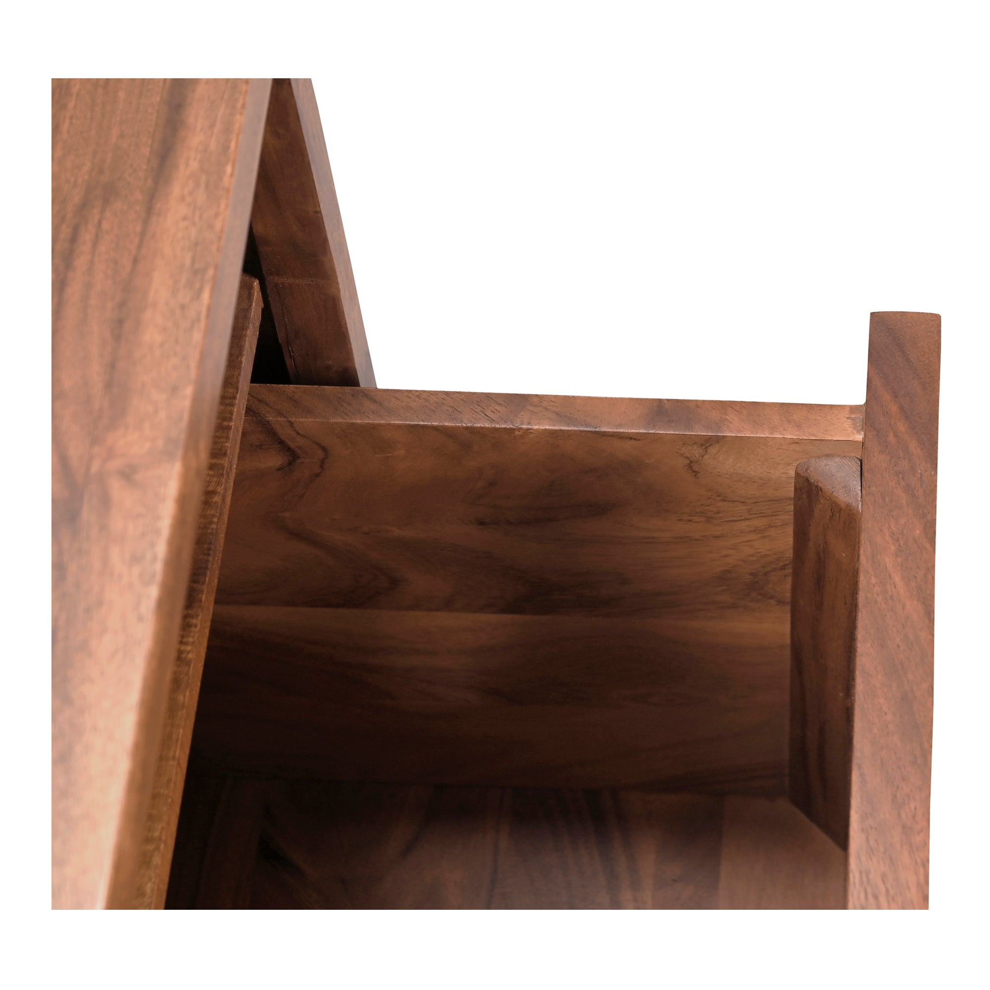 Bring warmth and texture to your bedroom with the Nadaal Studios Sterling Nightstand. Made from solid acacia wood, this piece highlights the natural grain and beauty of the material. The live-edge detailing on the drawer front, combined with butterfly joinery techniques, creates an artisanal touch that sets this nightstand apart. Featuring one spacious drawer and an open shelf, the Sterling Nightstand offers functional storage with a distinct industrial style. With no assembly required, it’s ready to enhance your space with its natural charm and robust craftsmanship.