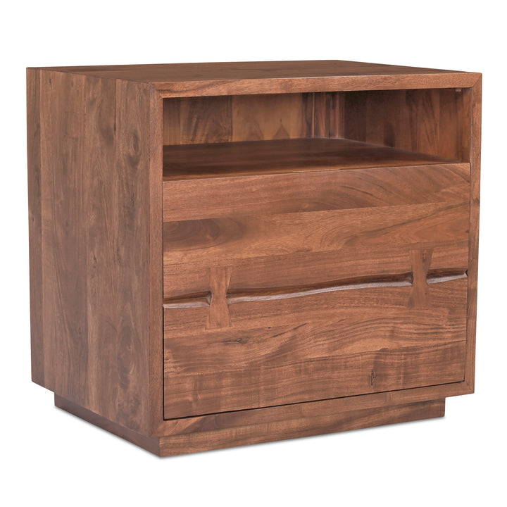 Sterling Nightstand, Solid Acacia Wood, Live-Edge Detailing, Industrial Style, Brown