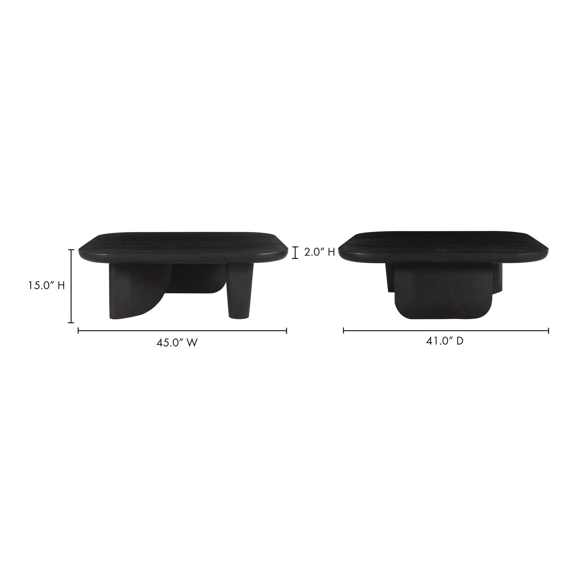 Ground your living space in bold sophistication with the Nadaal Studios Talia Coffee Table, a masterpiece of rustic elegance. Handcrafted from solid Acacia wood, this table is finished in a bold black distressed look that exudes drama and character. Its abstract, sculptural base blends ancient influences with modern design, making it a standout centerpiece in any home. The natural grains, knots, and textures of the wood ensure that each table is unique, adding a personal touch to your decor. Perfect for creating a dramatic focal point, this coffee table effortlessly combines form and function.