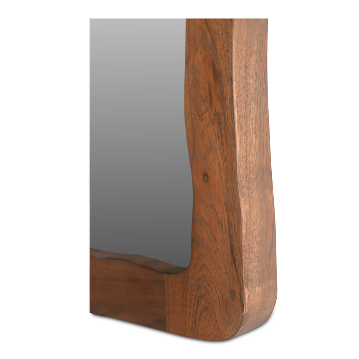 A striking blend of organic form and mid-century inspiration, the Tavian Wall Mirror from Nadaal Studios adds an artistic touch to any space. Encased in a free-form wave frame crafted from solid Acacia wood, this mirror exudes warmth and natural elegance with its rich mid-tone walnut brown finish. Designed for versatility, it can be hung vertically or horizontally to suit your space. Whether placed in an entryway, bedroom, or living room, the Tavian Mirror creates a refined focal point that enhances light and depth in your home.