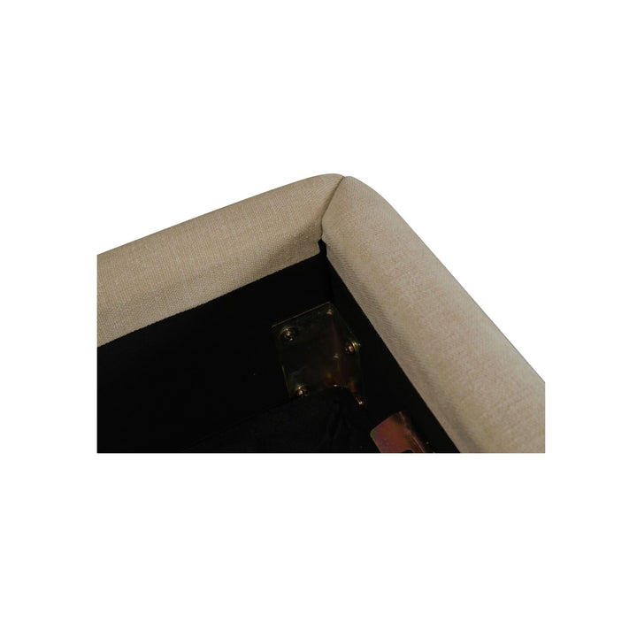 The Tavros Storage Bed pairs sculptural form with practical function through its rounded headboard and bun-shaped legs. Upholstered in textured warm beige polyester, it brings inviting softness and visual depth to the bedroom. Supported by a solid wood, plywood, and MDF frame, the bed includes a hydraulic lift mechanism that opens to spacious concealed storage, offering a blend of modern comfort and everyday convenience.