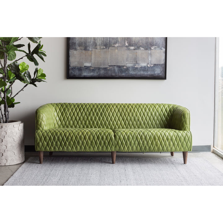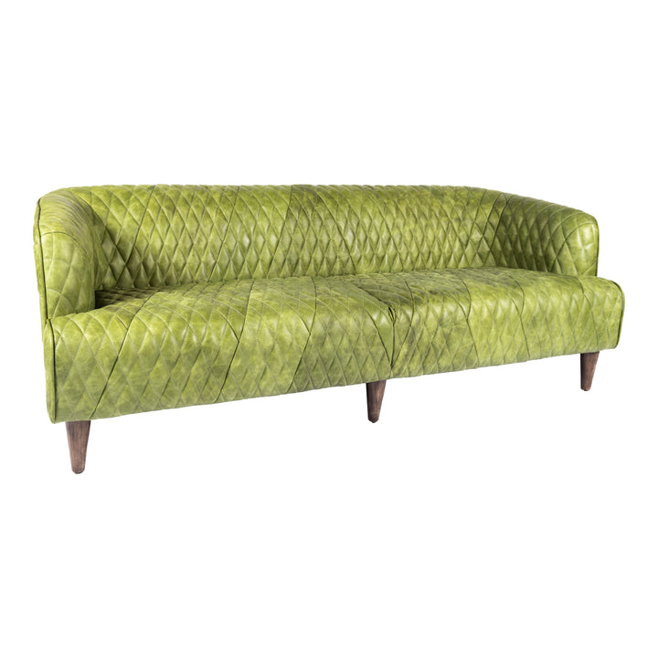 Teagan, Sofa Top-Grain Leather with Tapered Wood Legs 3 Seater, Dark Green