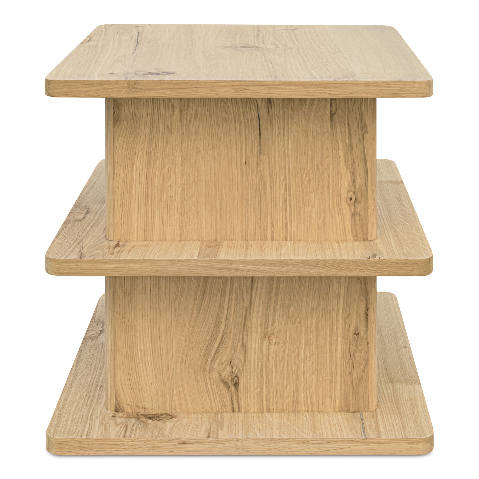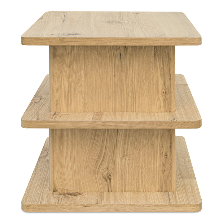 Thalor Side Table, Square Rustic Oak Top with Rounded Edge Shelves, Solid Oak Detail, Natural