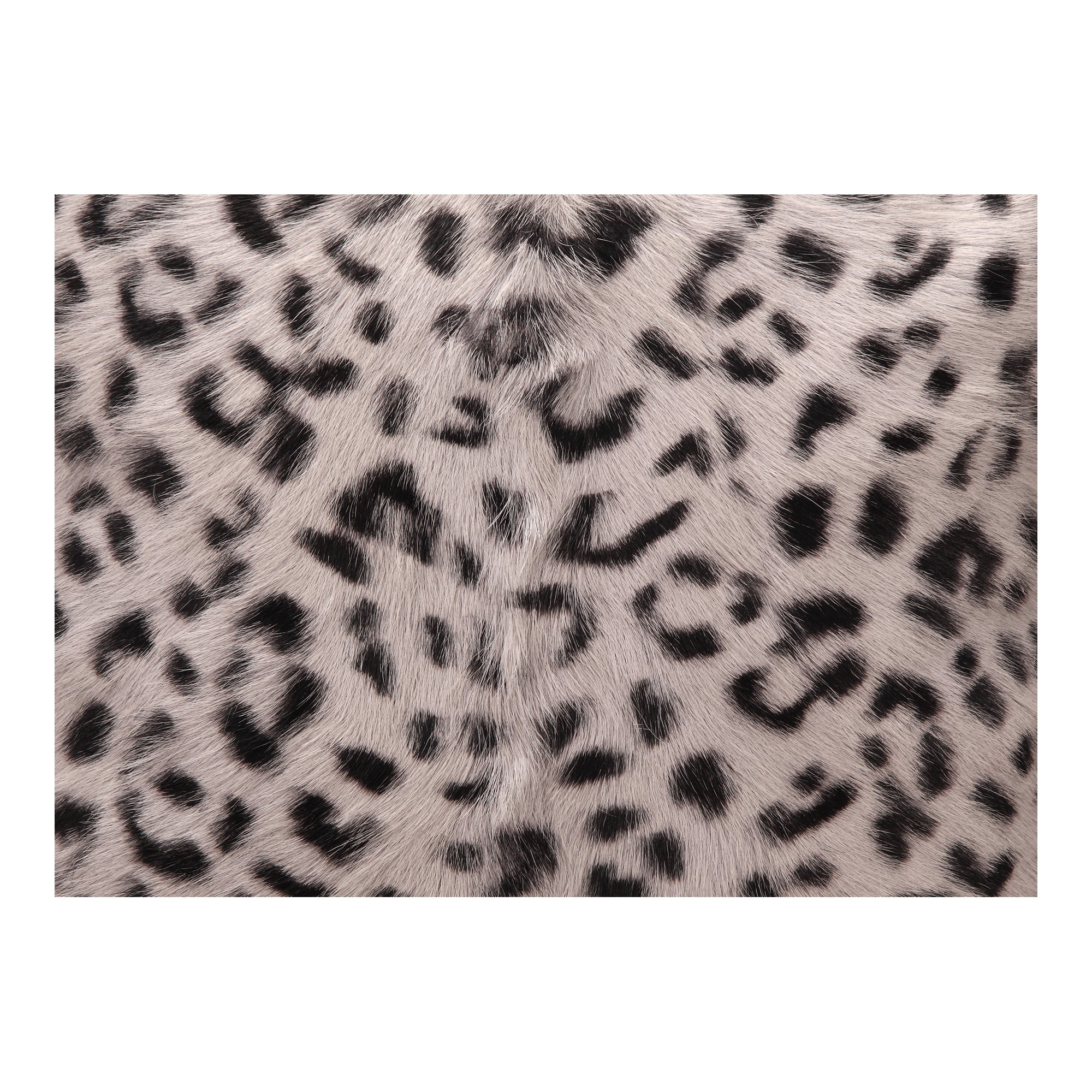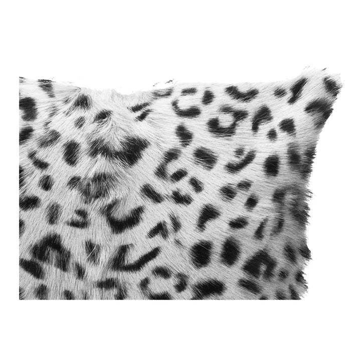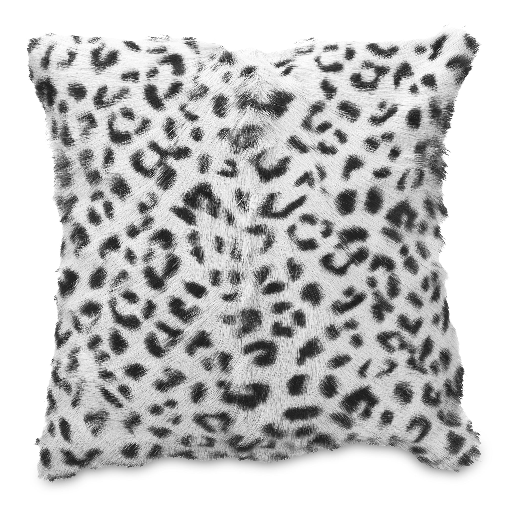 Thane, Throw Pillow with Goat Fur and Polyester Insert, Grey Leopard Print