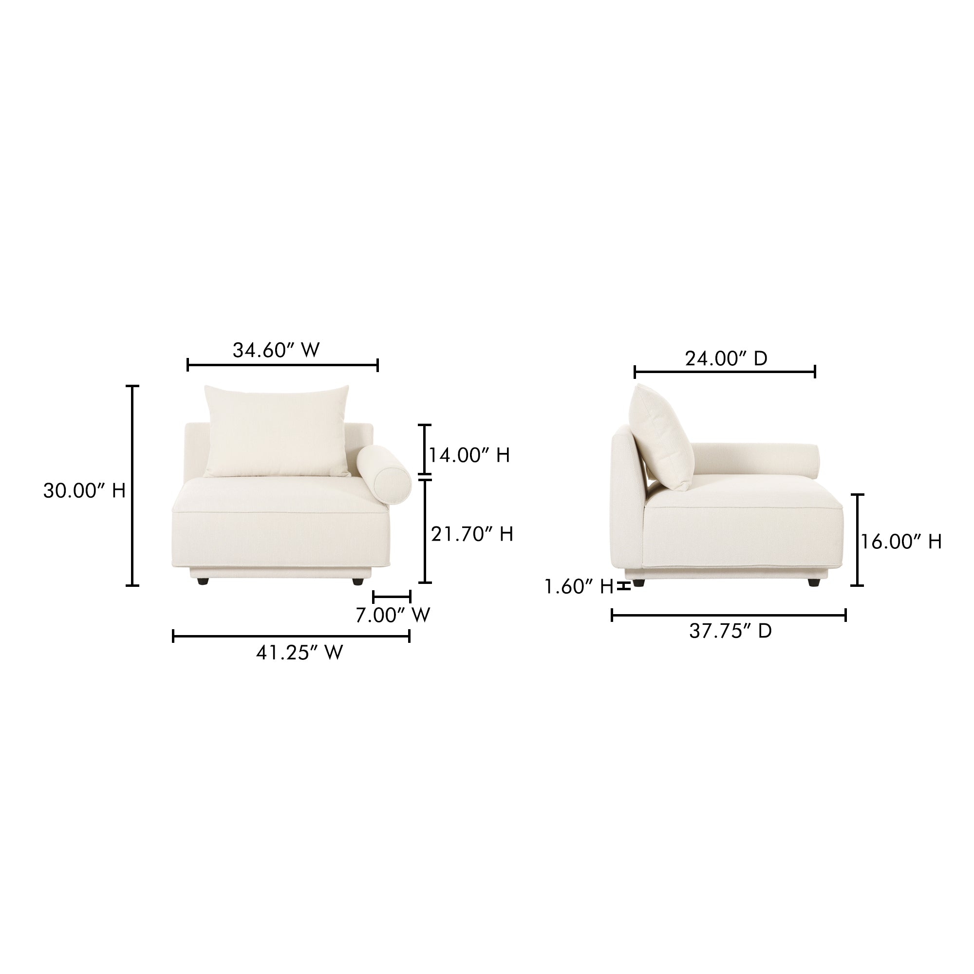 Thavrin Right-Arm Facing Chair, Textured Fabric Upholstery with Removable Cushions, White