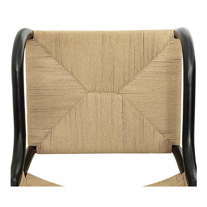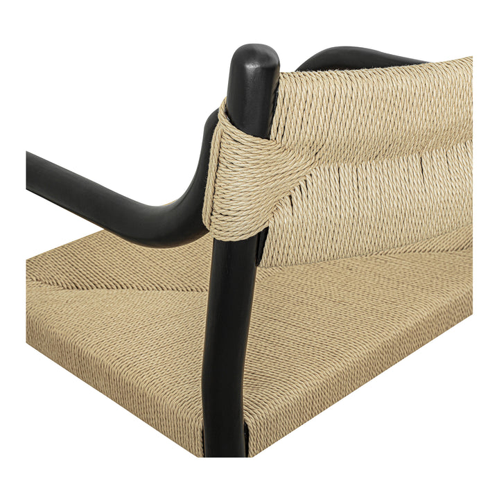 Theren Dining Chair, Woven Paper Rope, Curved Arms, Solid Rubber Wood Frame, Black