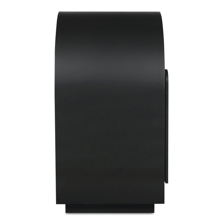 The Nadaal Studios Theron Cabinet combines modern elegance with functional storage, making it a stylish and practical addition to your home. Featuring four tempered reed glass doors, this cabinet includes three adjustable interior shelves, offering customizable storage for dinnerware, books, or decorative items. The solid beech wood base and oversized handles provide a natural contrast to the sleek black finish, creating a striking yet harmonious design. Built with durable materials, including a plywood frame and MDF side and back panels, the Theron Cabinet is a sophisticated and versatile storage solution for any room.