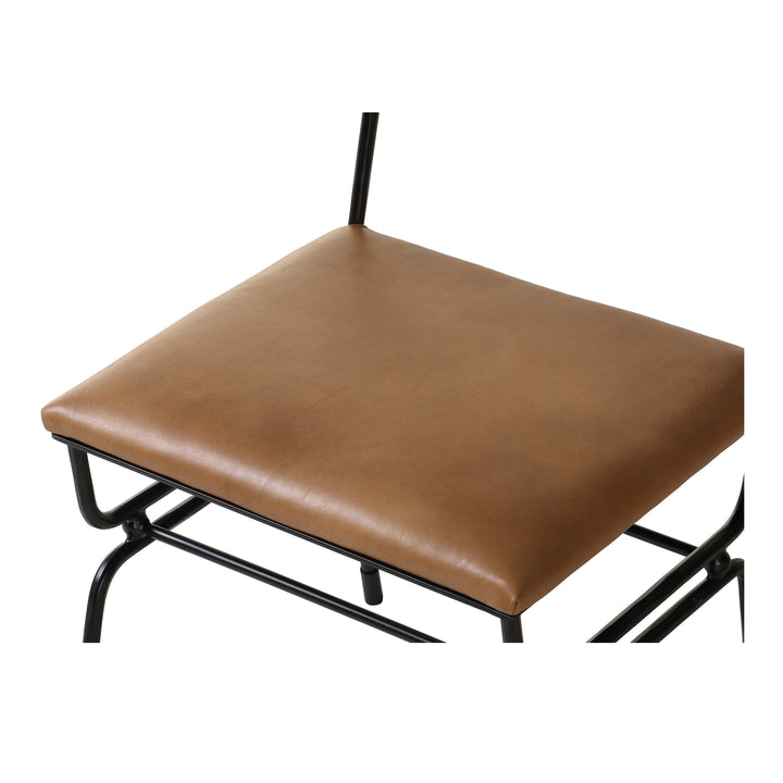 Theryn Dining Chair, Brown Buffalo Leather Seat, White Fabric Back, Hammered Iron Frame