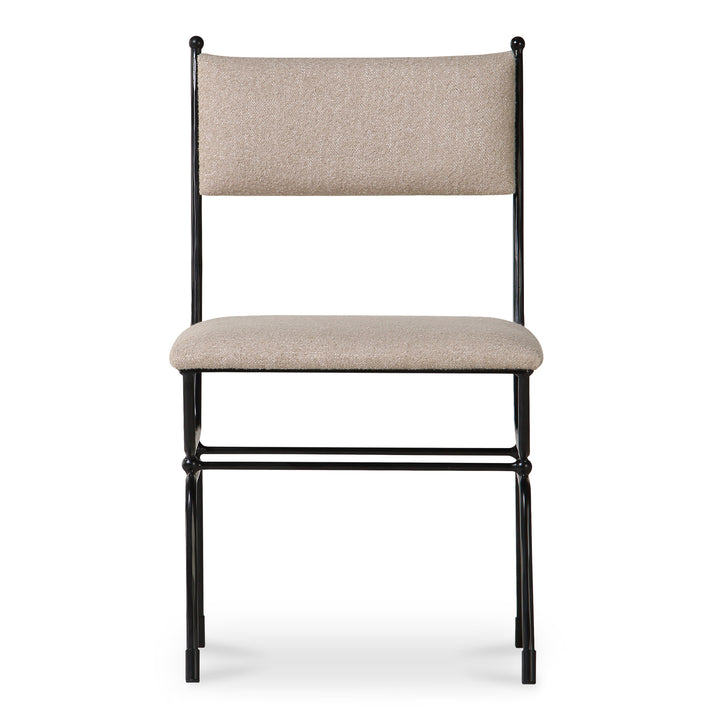 Theryn Dining Chair, Hammered Iron Frame with Finial Detail, Beige Linen Blend Upholstery