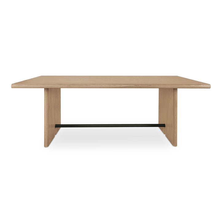 Thornefield Dining Table for 6, Oak Veneer Top, Metal Spreader Bar, Modern Edge Design, Natural Finish