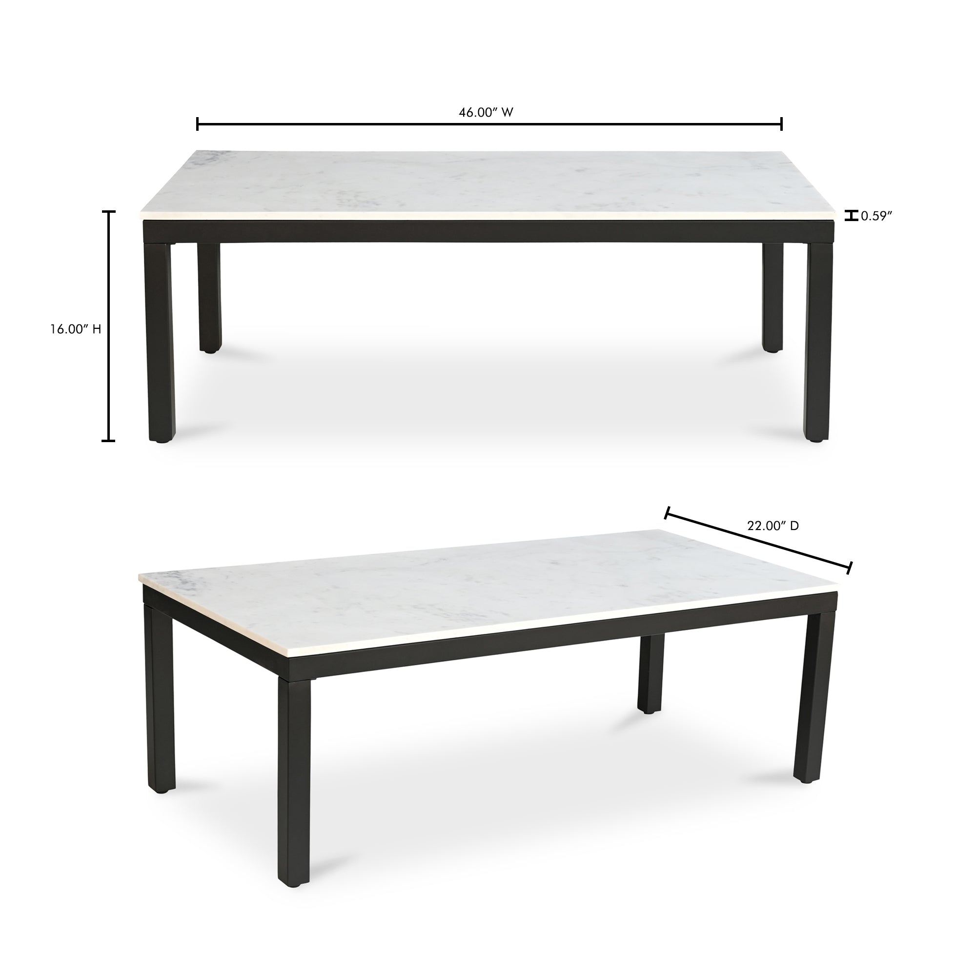 Upton Coffee Table, Rectangular White Banswara Marble Top, Black Powder-Coated Iron Frame