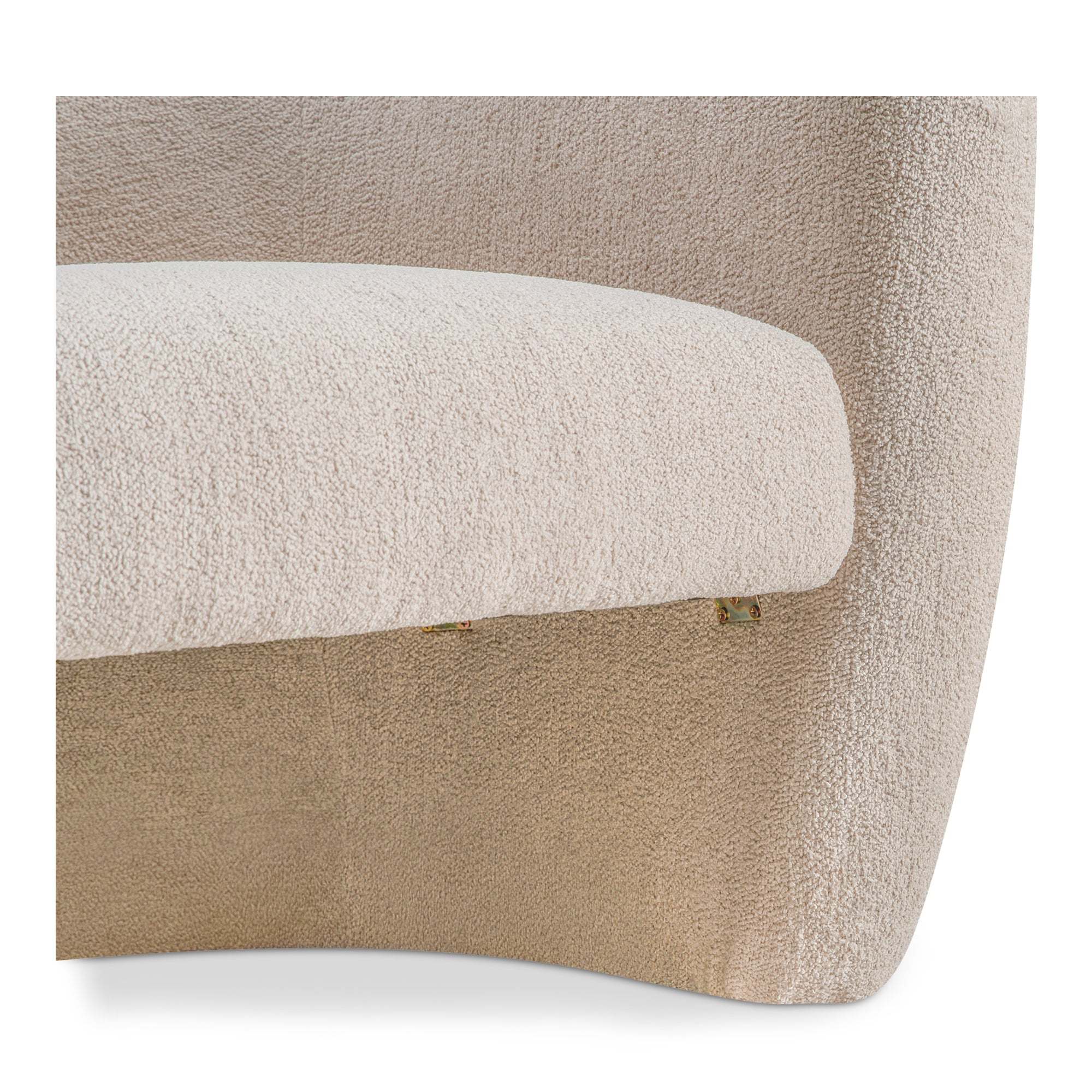 Valerian Accent Chair, Curved Back, Exaggerated Piping, Solid Wood Frame, Textured Upholstery, Beige