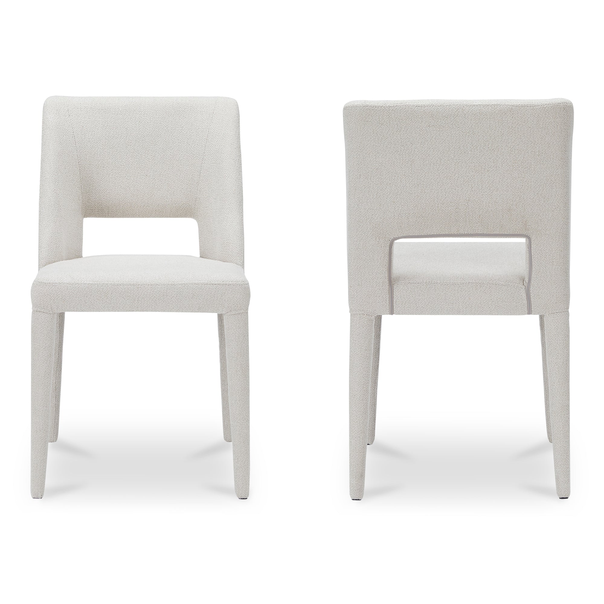 Varekian Dining Chair, Fully Upholstered, Metal Frame, Rounded Carved Back, Beige - Set of 2