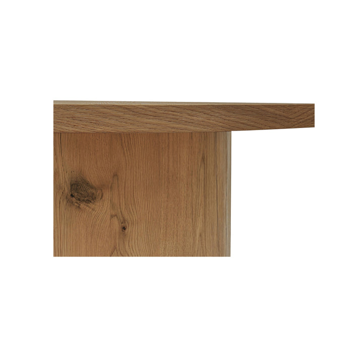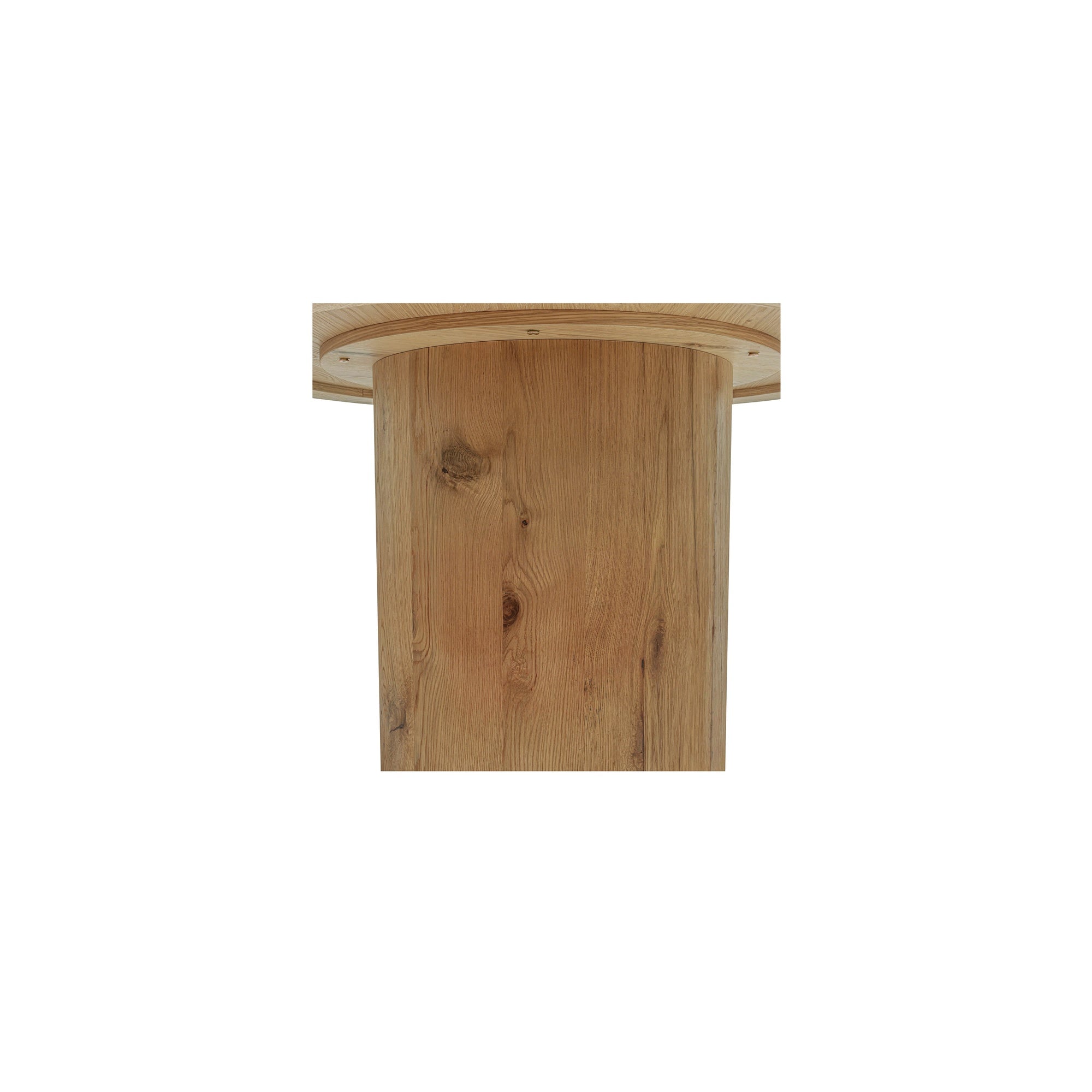 Varen Dining Table, Round Thick Rustic Oak Veneer Top, Cylindrical Pedestal Base, Natural Finish