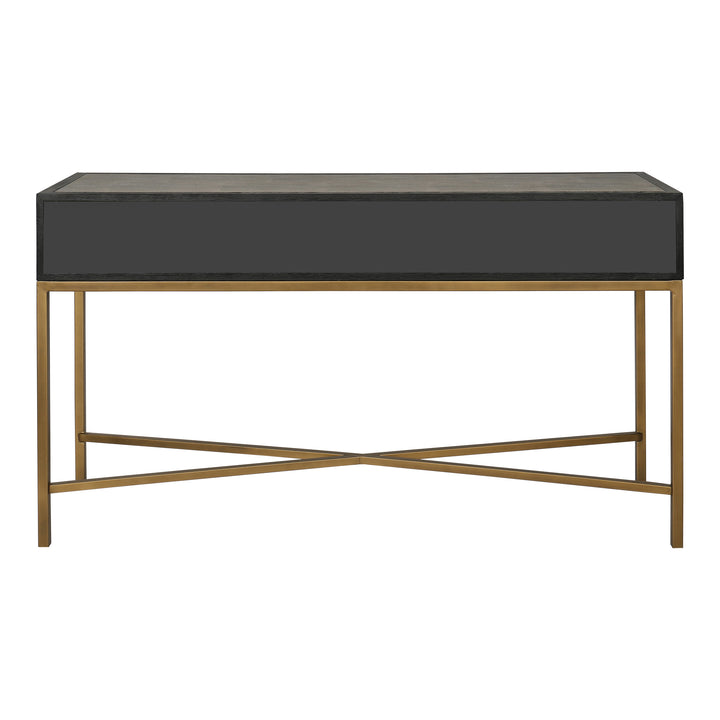 Vaughn, Console Table, Shagreen Patterned Polyurethane, Brass-Finished Legs, Solid Black Oak Frame, Grey