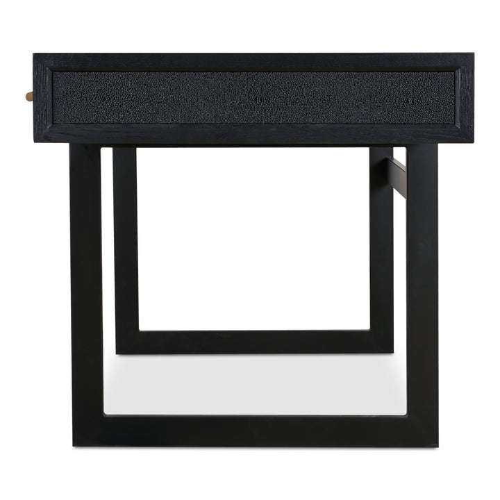 Vaughn Desk, Solid Oak Frame, Vegan Shagreen Upholstery, Brass Detailing, Black Finish