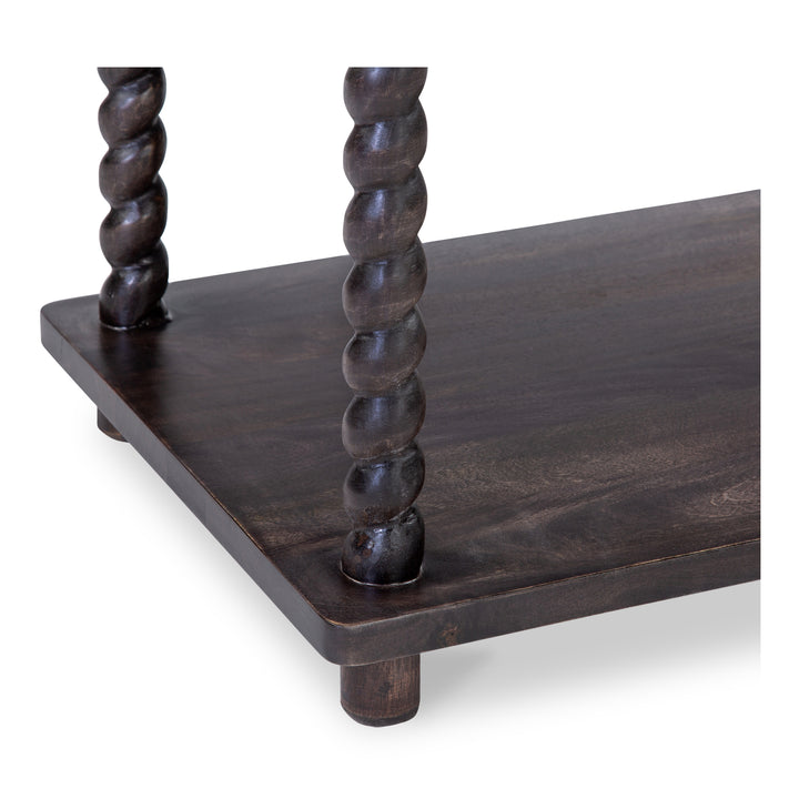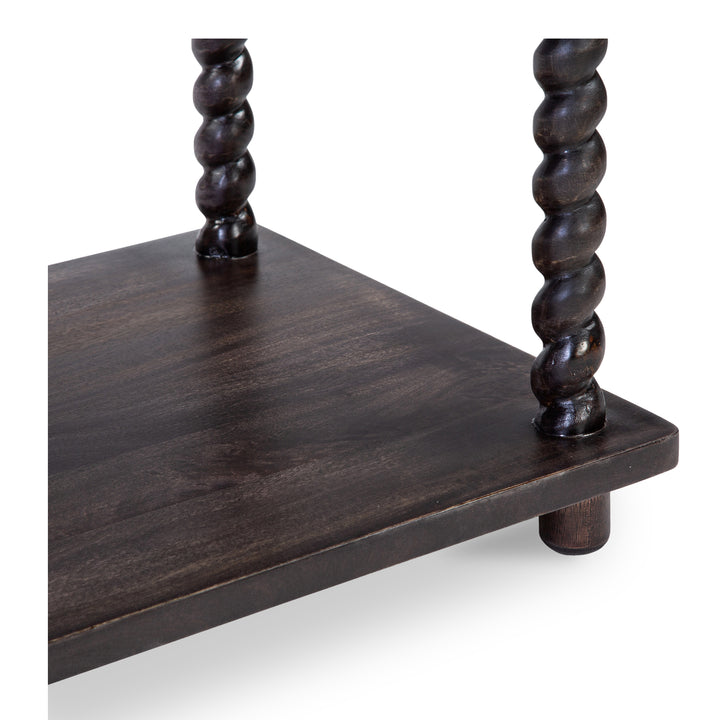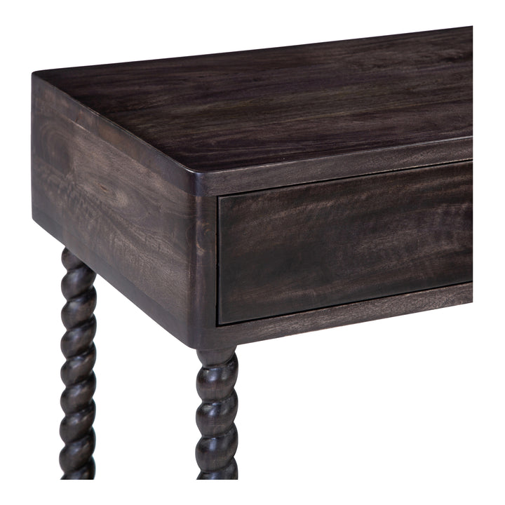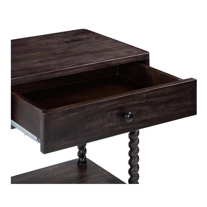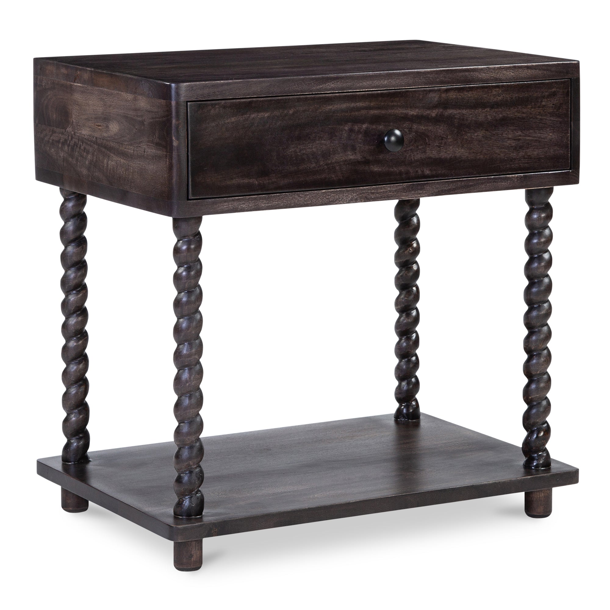Vespera Nightstand, Handcrafted Mango Wood with Intricate Turned Legs, Soft-Close Drawer, Dark Brown