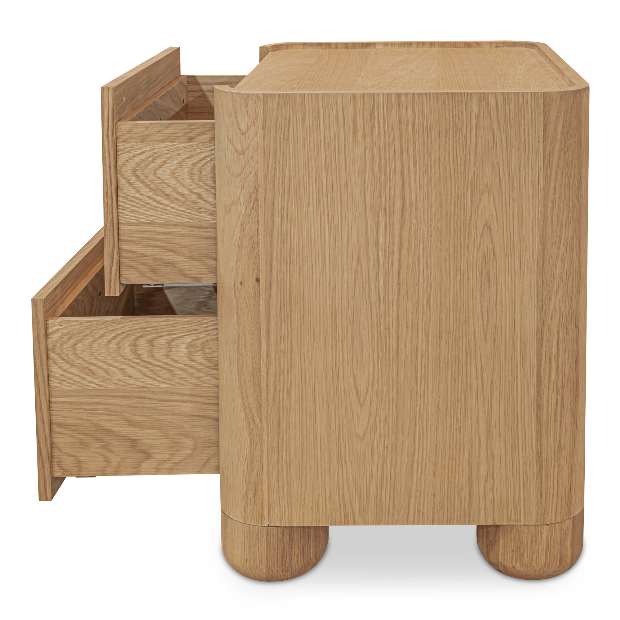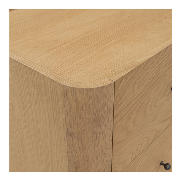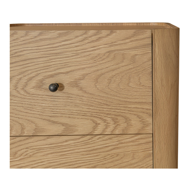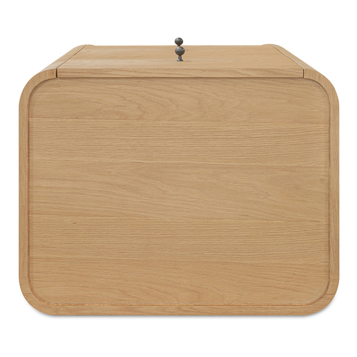 Bring easy order to the main bedroom with the Virel Nightstand — a timeless profile with playful lip detailing that feels fresh in any layout. Two drawers on soft-close glides keep tech, reading, and nightly essentials within reach but out of sight, supporting a tidy, relaxed atmosphere. A solid oak frame pairs with oak-veneer surfaces for lasting quality and a warm, natural presence. No assembly needed — unbox, place beside the bed, and enjoy a functional setup that fits your life.