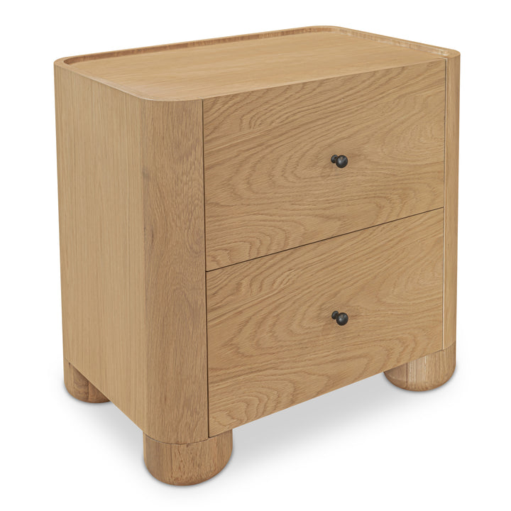 Virel Nightstand, Solid Oak Frame with Lip Detail 2-Drawer Bedside Table, Natural Finish