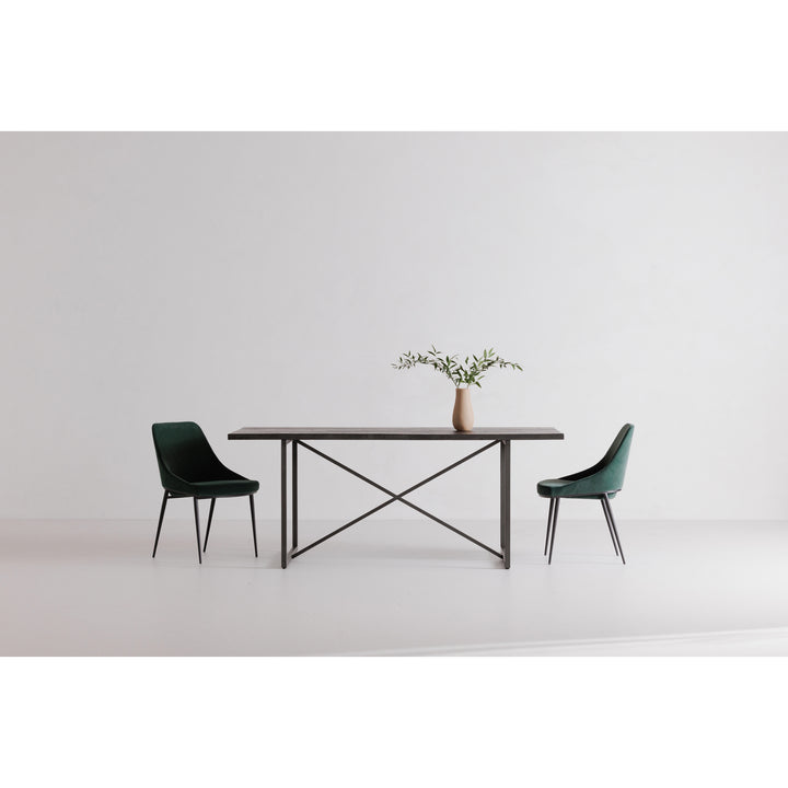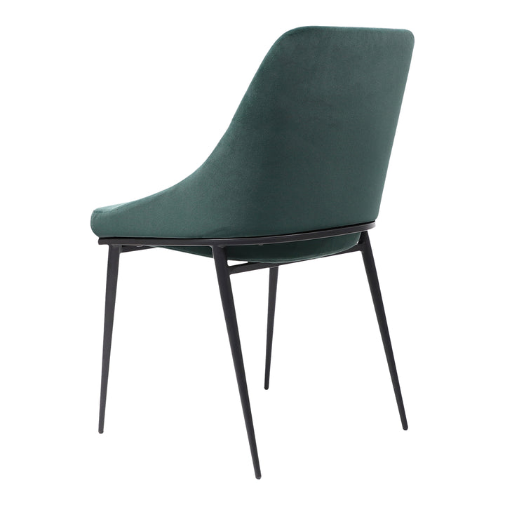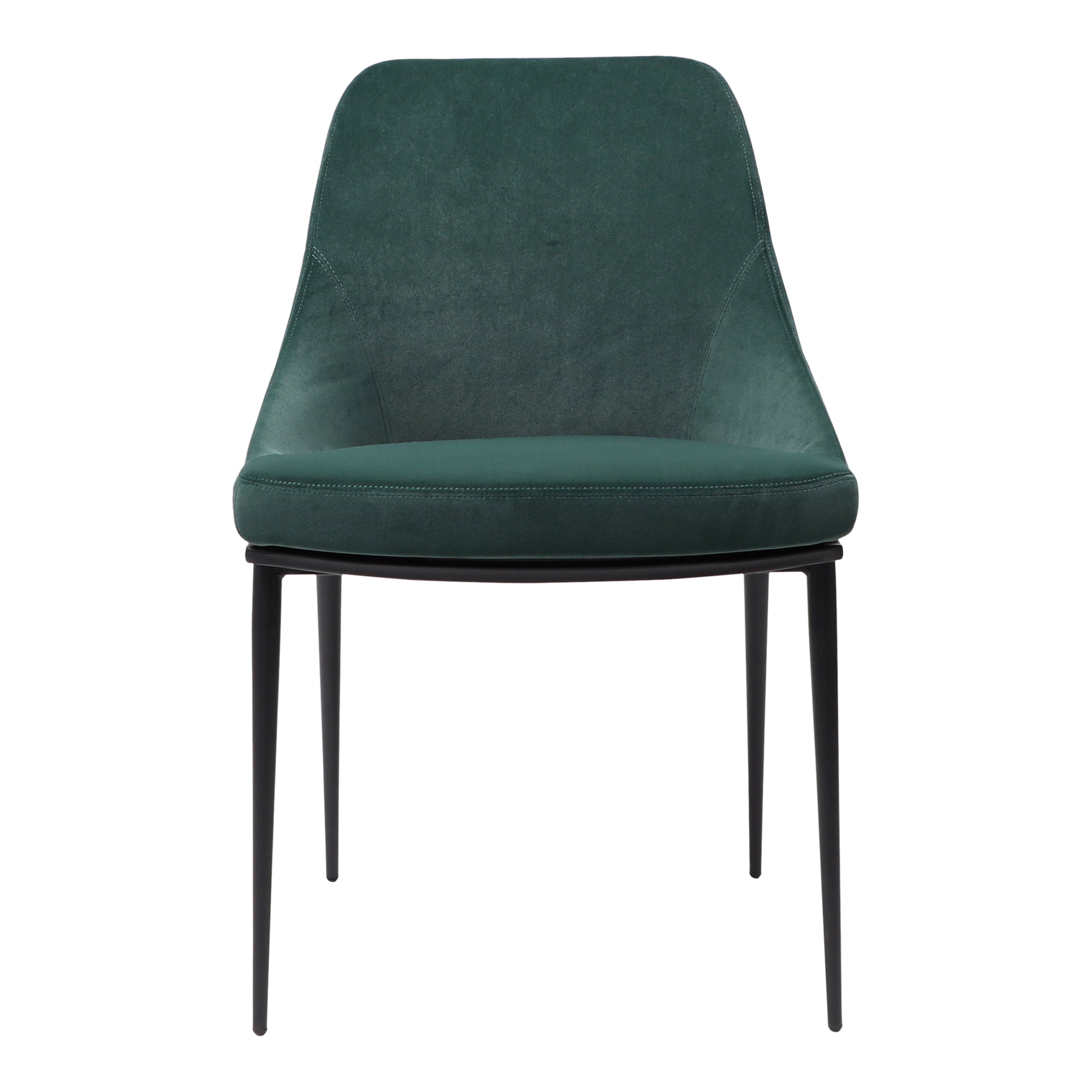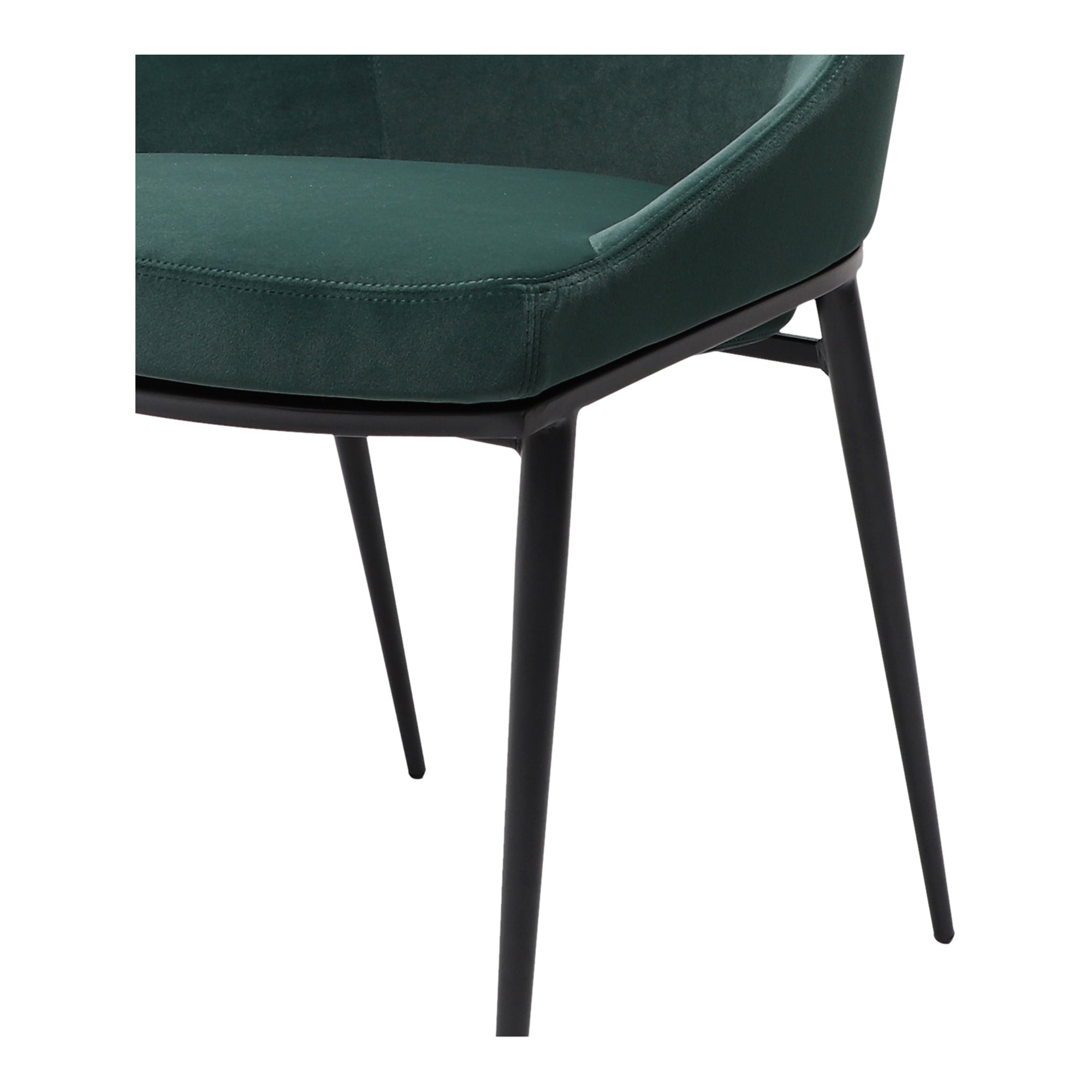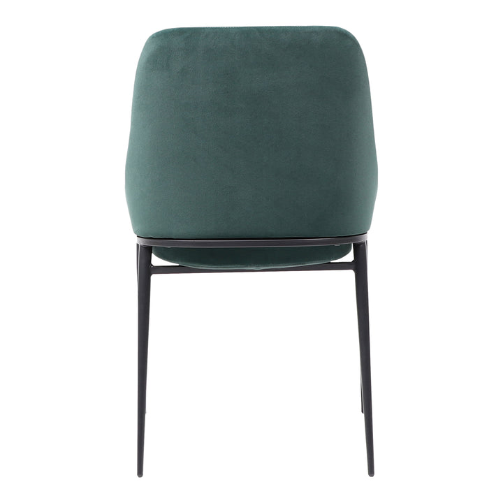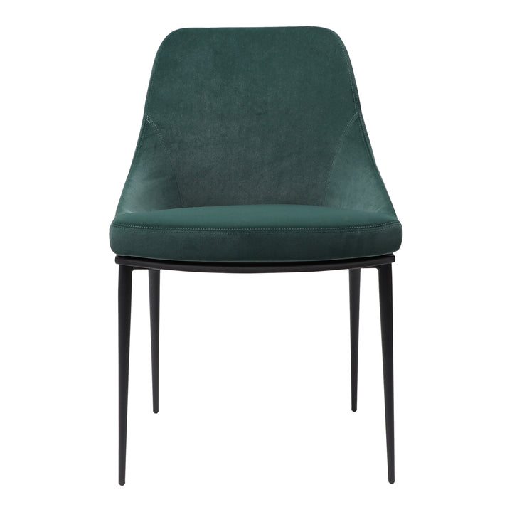 The Vivian Dining Chair by Nadaal Studios combines comfort, luxury, and style in a single piece. Designed with a gentle curved silhouette for ergonomic support, this chair is upholstered in lush green velvet, offering a rich, inviting look. High-quality molded foam provides a cushioned seating experience, while the tapered, powder-coated steel legs ensure durability and stability. Ideal for modern and contemporary spaces, the Vivian Dining Chair brings a pop of color and sophistication to dining rooms or living areas.