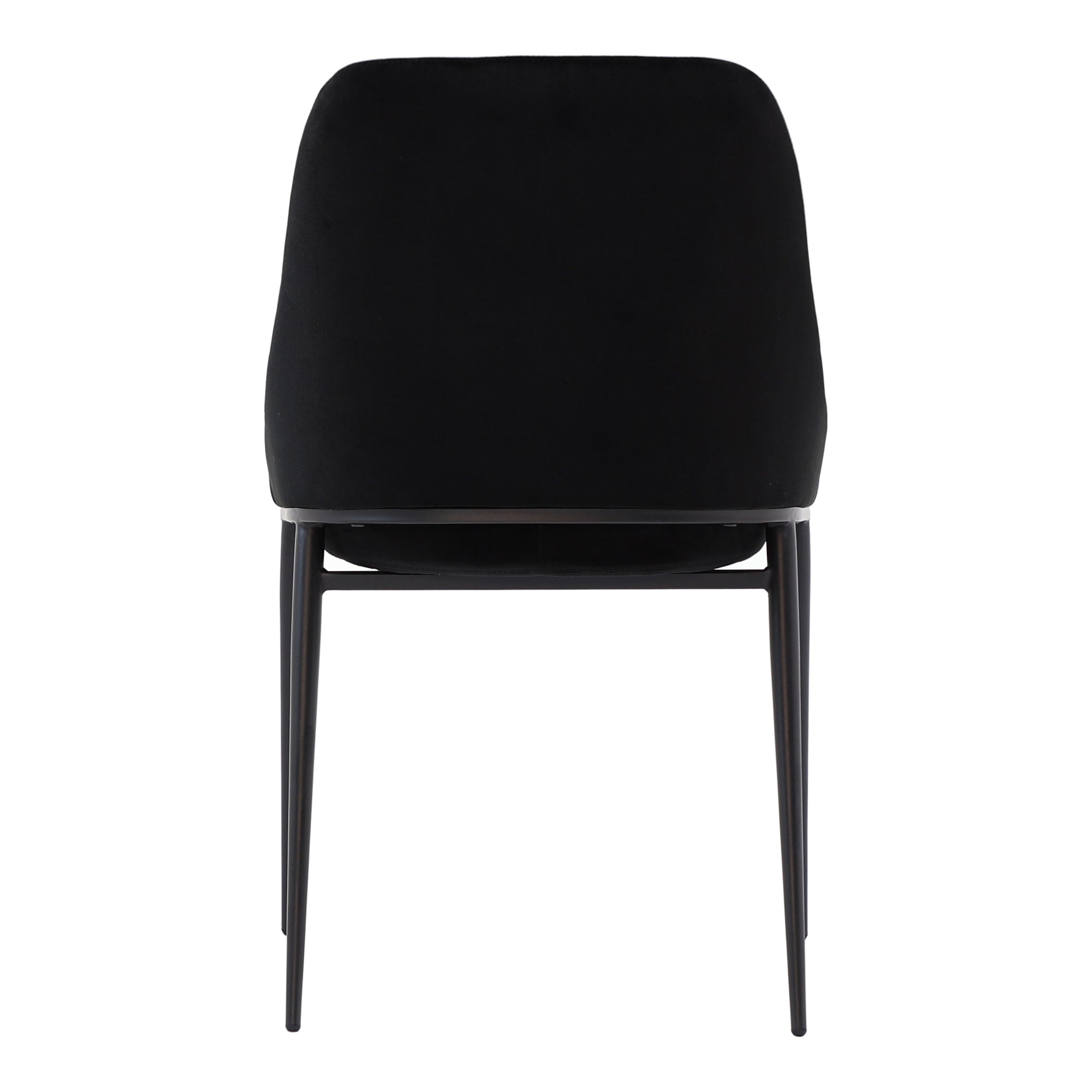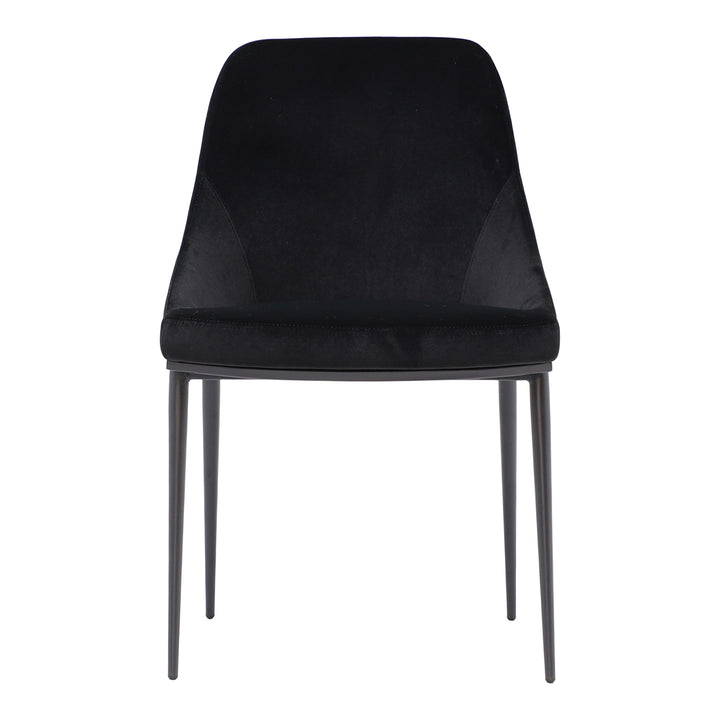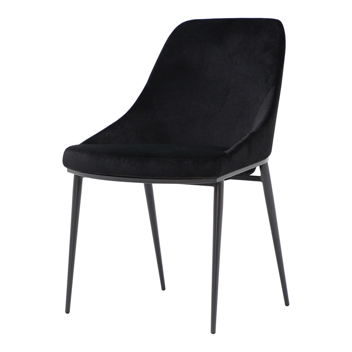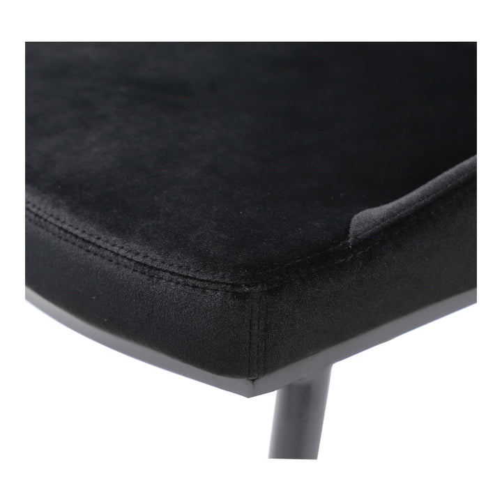 Upgrade your dining area with the Vivian Dining Chair by Nadaal Studios, a perfect blend of style and comfort. The curved silhouette of this chair promotes ergonomic seating, while the high-quality molded foam padding provides plush support. Upholstered in shadowed black polyester velvet, the chair adds a touch of luxury to your dining space. The tapered, powder-coated steel legs offer both stability and a sleek look, and the chair is available in multiple colors to suit your decor. With its contemporary design, the Vivian Dining Chair brings sophistication and comfort to any dining room.