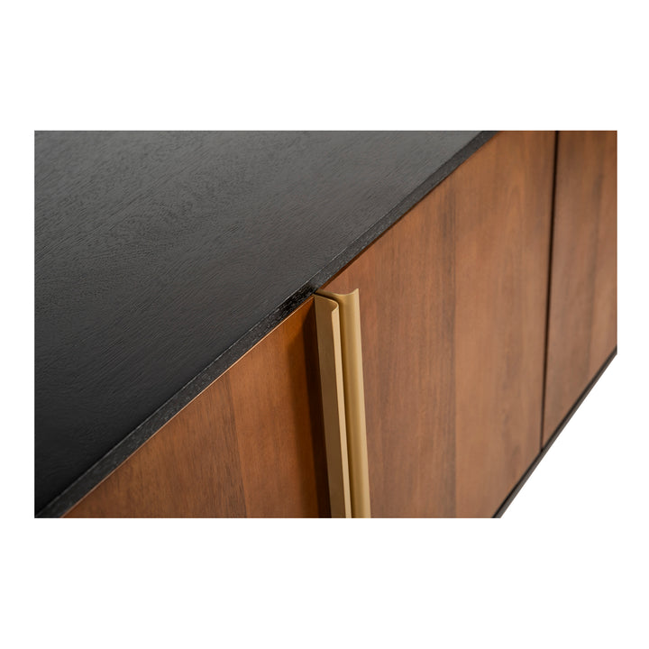 Warwick Sideboard, Mango Wood, Dark Brown Matt Finish, Rectangular, Yellow Brass Accents