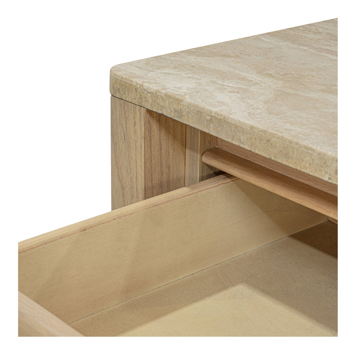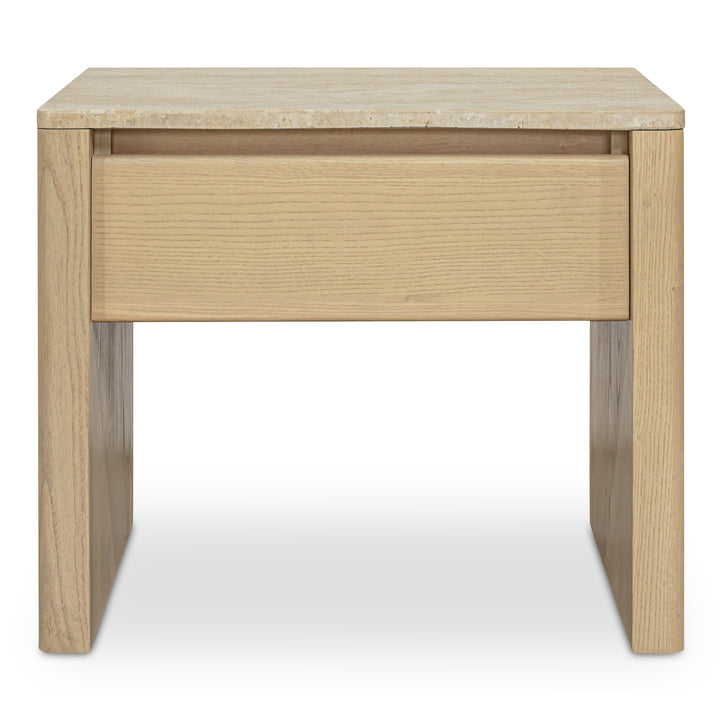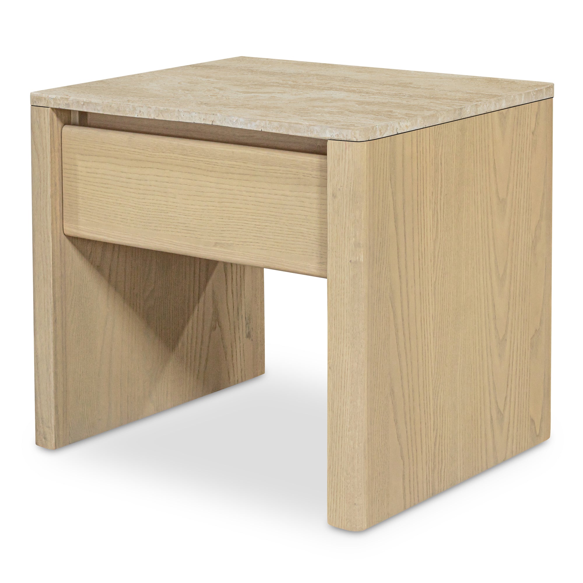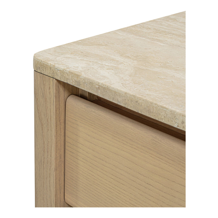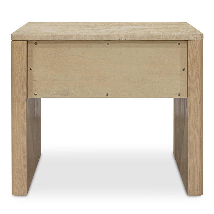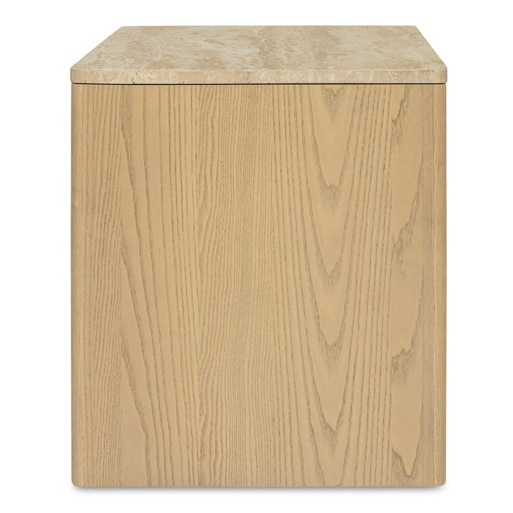 Wickman Nightstand, Turkish Travertine, Solid Ash Base, Beige