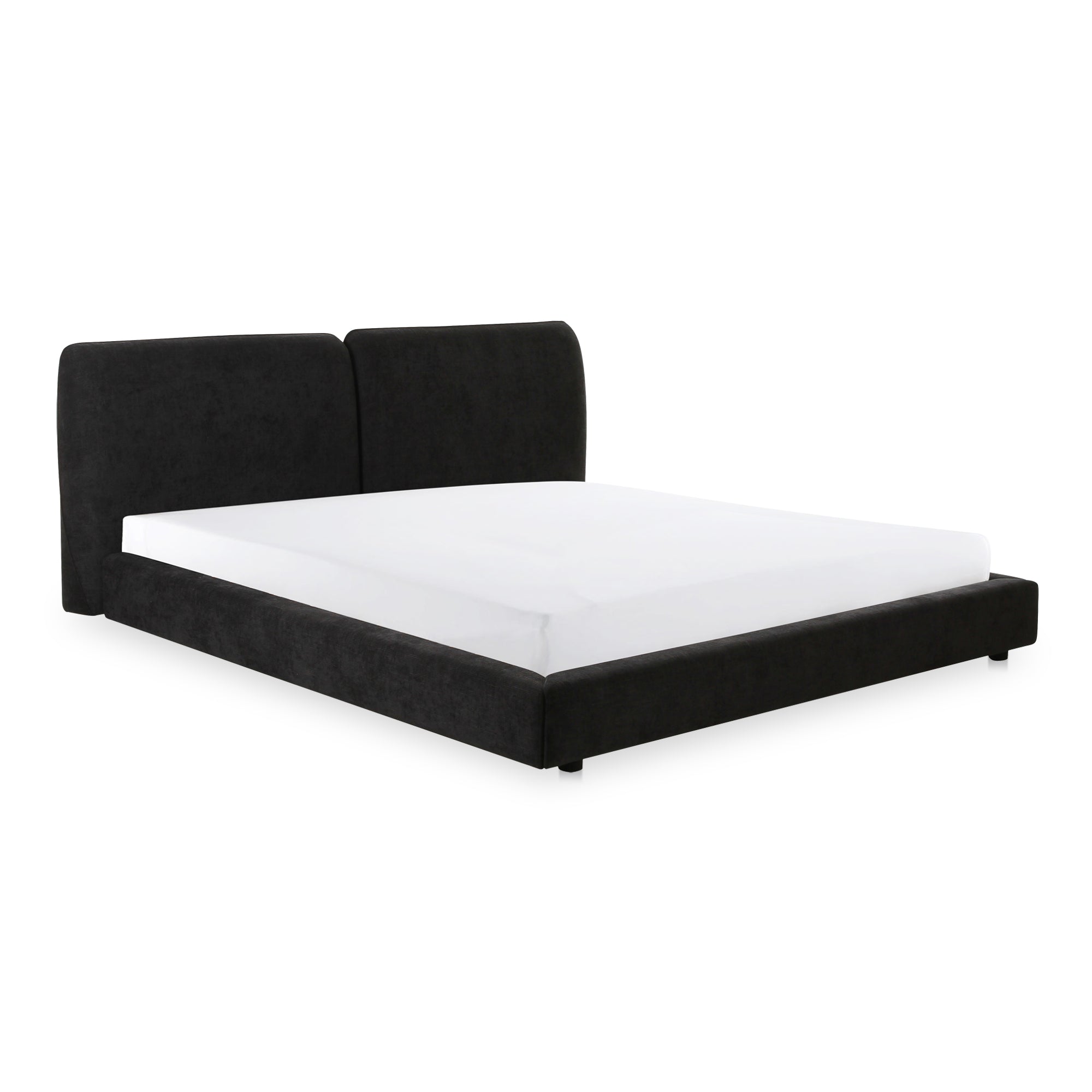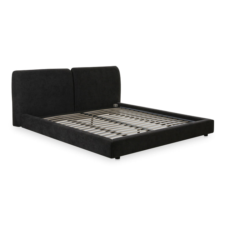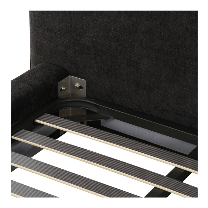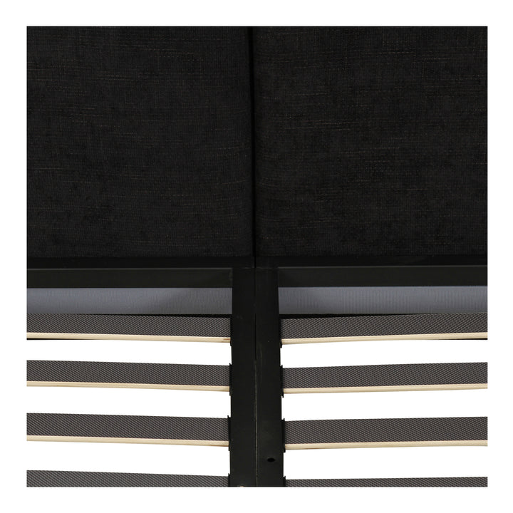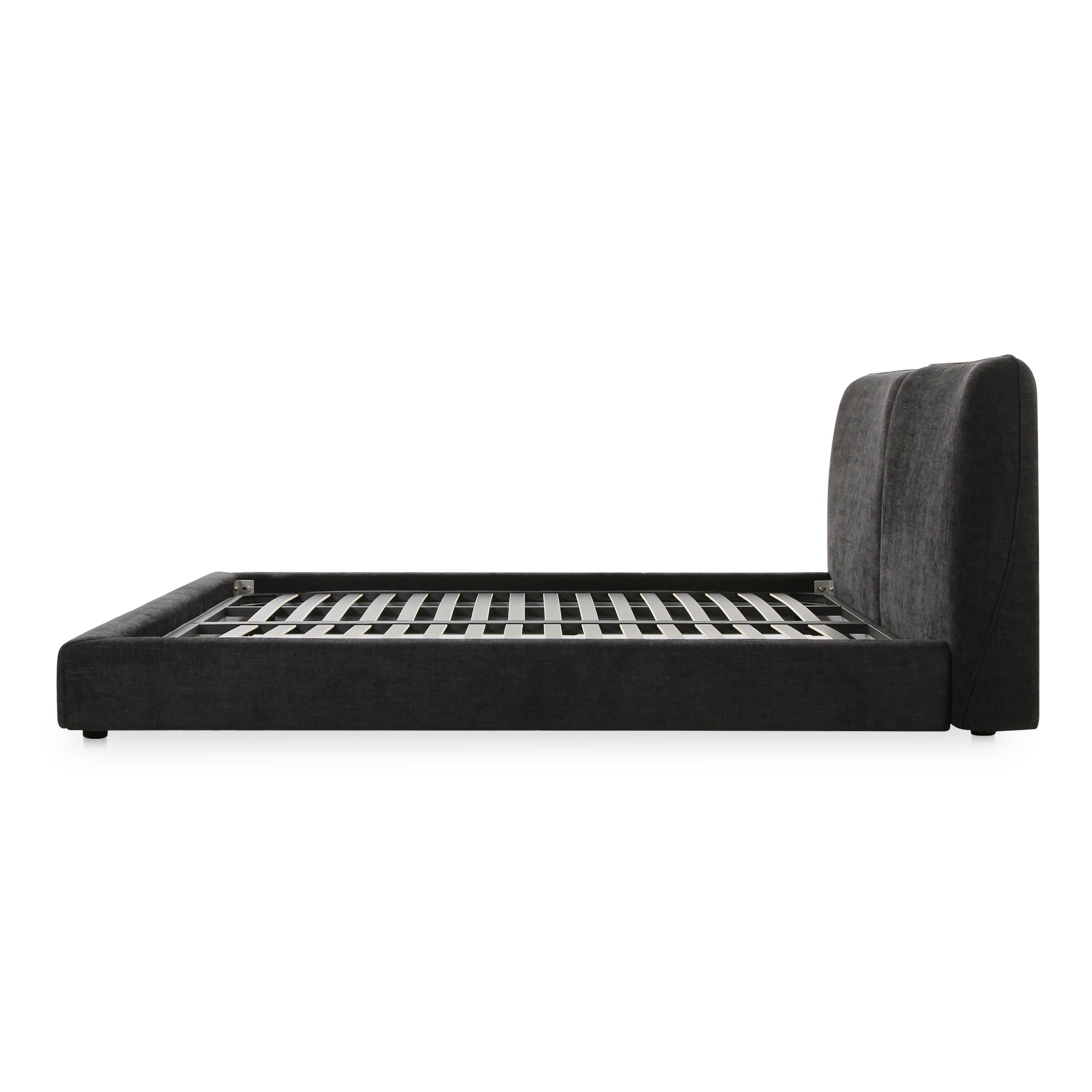Winston King Bed Frame, Polyester & Linen Blend Upholstery, Wood Frame, Supportive Slats, No Box Spring Required, Heather Black