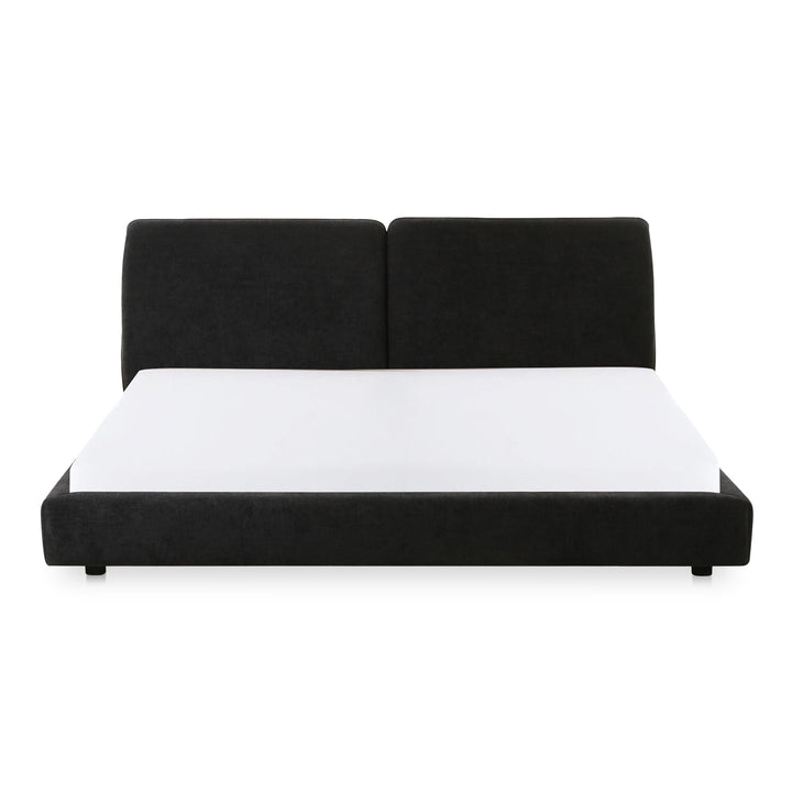 The Nadaal Studios Winston Bed Frame in Black is the perfect blend of contemporary elegance and functional design, making it an ideal centerpiece for any modern bedroom. Upholstered in a sophisticated polyester and linen blend fabric, this bed frame brings a soft, refined texture while maintaining durability for everyday use. Built with a sturdy plywood wood frame, it offers long-lasting strength and stability. The integrated slat support system ensures proper mattress support without the need for a box spring, preventing sinking or sliding. Designed with sleek black plastic legs, the Winston bed frame provides a seamless, minimalist aesthetic. With full assembly required, this bed frame is a stunning addition to any bedroom while offering both style and practicality.