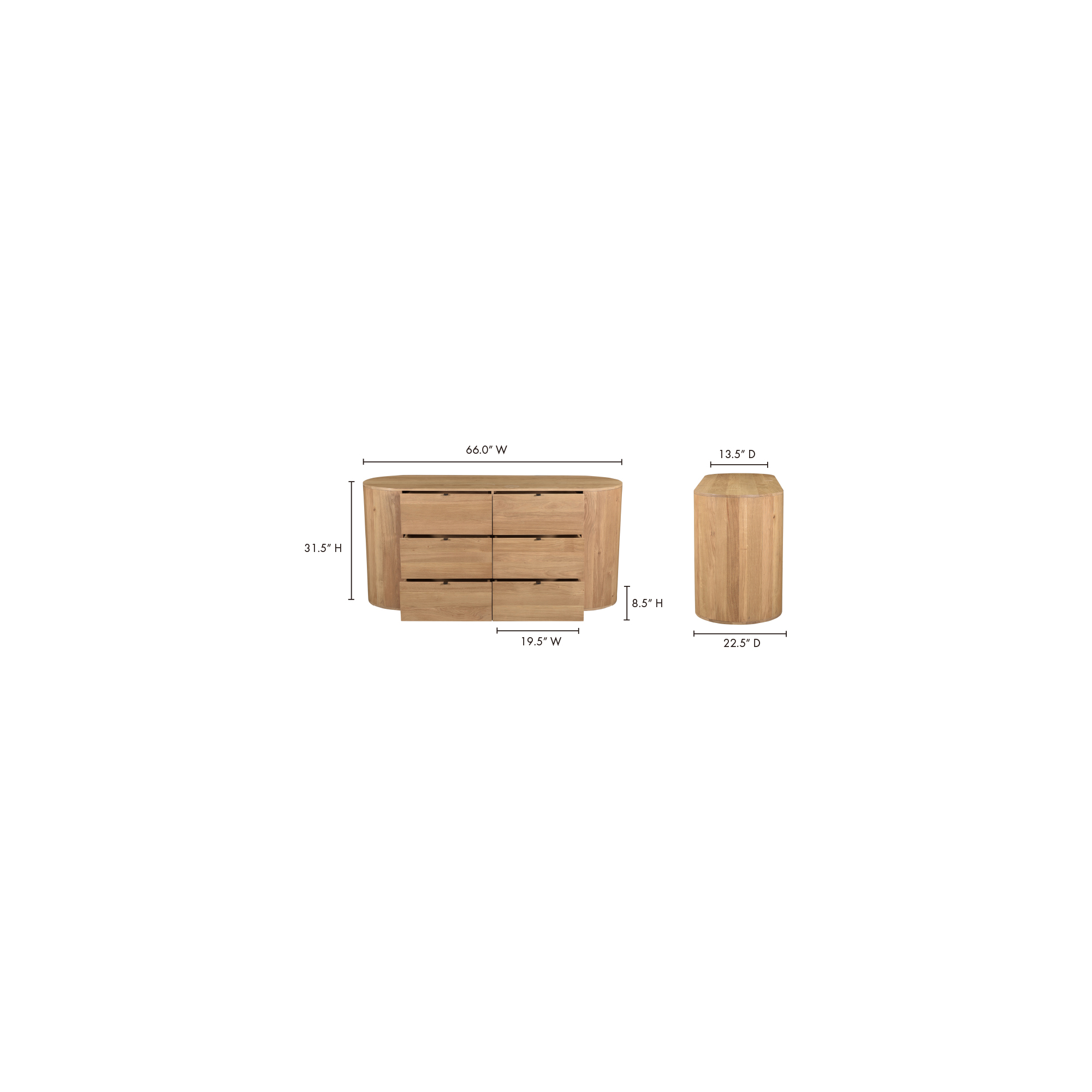 The Yasmin Dresser in Natural brings the beauty of raw oak into a refined, contemporary silhouette. Crafted from solid oak with a semi-gloss finish, it features six drawers with understated metal pull-tab hardware and discreet soft-close glides. A fully finished back and a clean profile make it perfect for open-concept rooms or center placement. With subtle variations in grain and tone, this dresser delivers simplicity and warmth with enduring quality.
