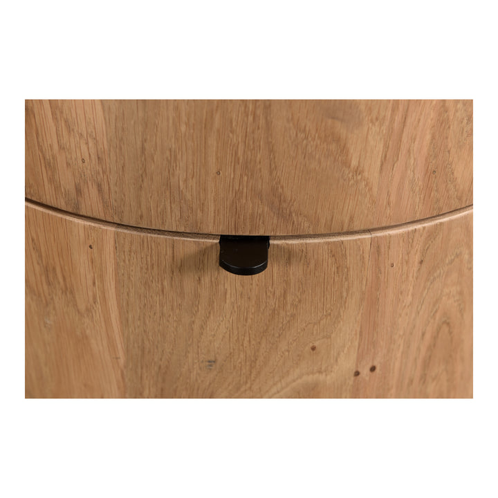 Minimalism meets organic charm in the Yasmin 2-Drawer Nightstand by Nadaal Studios. Crafted from solid oak, this bedside table embraces the natural character of the wood, with grain patterns and knots that make each piece unique. A semi-gloss finish enhances its warmth, while discreet soft-close drawers with metal pull-tab hardware provide seamless functionality. The compact, round design makes it a stylish and practical addition to bedrooms seeking a touch of Scandinavian simplicity.