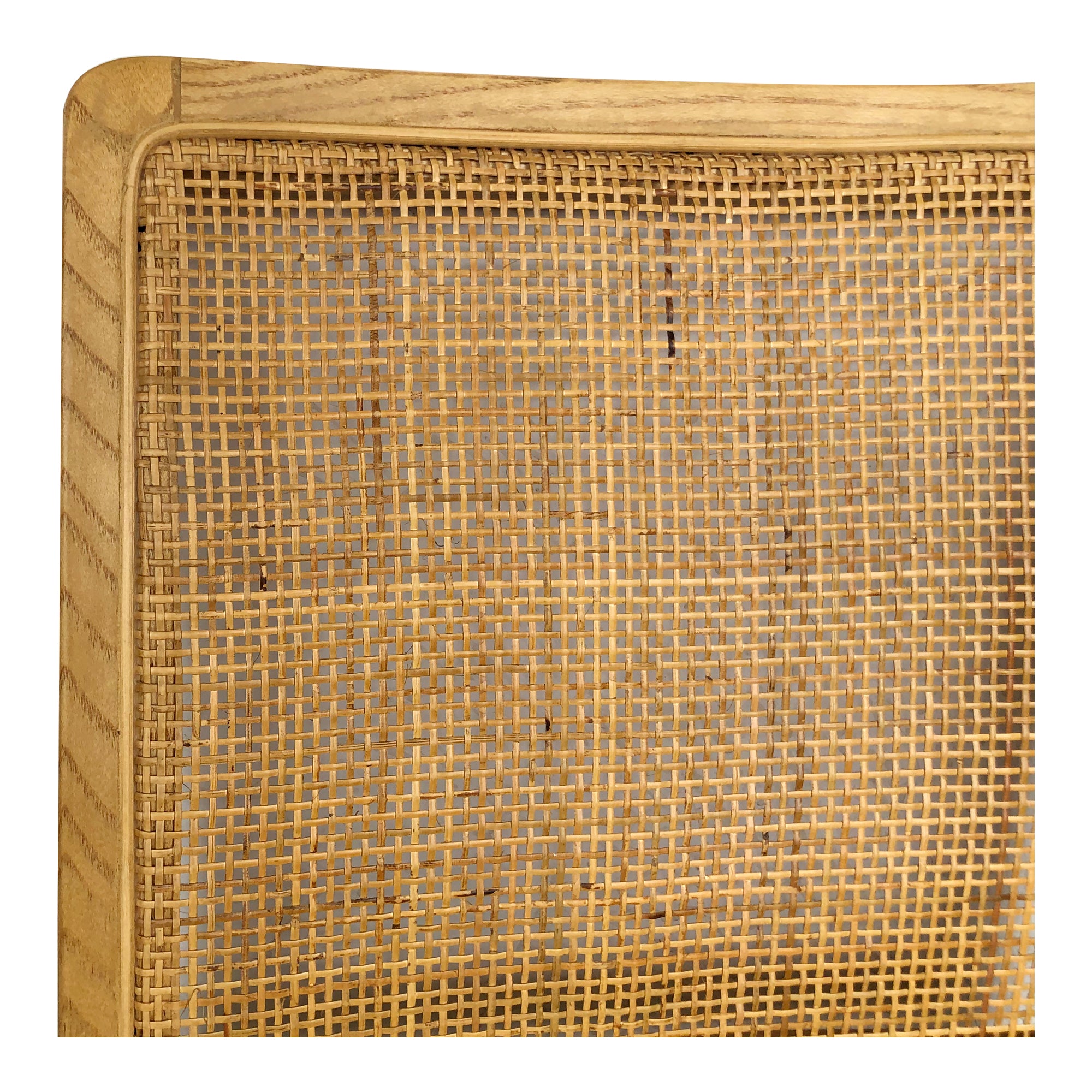 Yvette- 100% Cotton Upholstery with Solid Elm Wood and Rattan Back Dining Chair, Natural- Set of Two