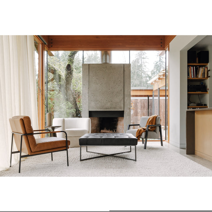 Zane Coffee Table, Square Tufted Top-Grain Buffalo Leather with Iron Legs, Black