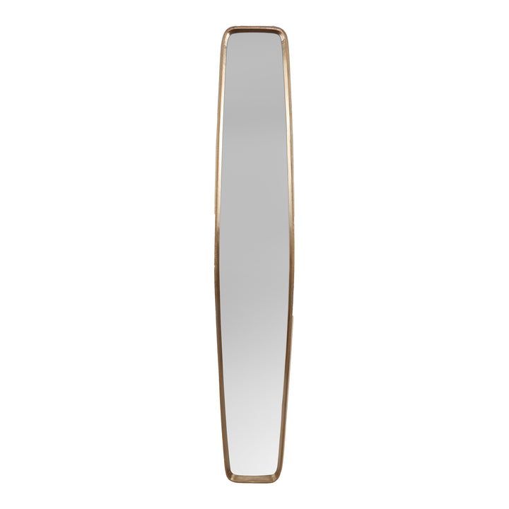 The NADAAL STUDIOS Zane Wall Mirror captures the essence of contemporary sophistication with its sleek design and striking antique brass finish. Ideal for both brightening and expanding the perceived space of any room, this mirror serves as a stunning focal point. Whether you're looking to add a touch of glamour to your living room or bring a functional elegance to a hallway, the Zane mirror is perfectly suited to enhance the modern home with a luxurious aesthetic.