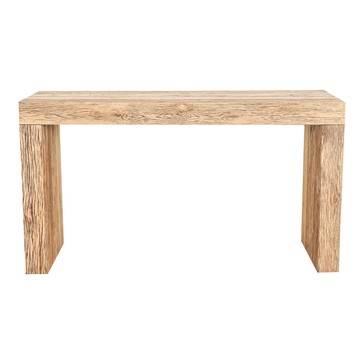 Zephyrine Console Table, Square Top Solid Reclaimed Oak with Oak Veneer Aged Natural Finish, Rustic Natural Oak